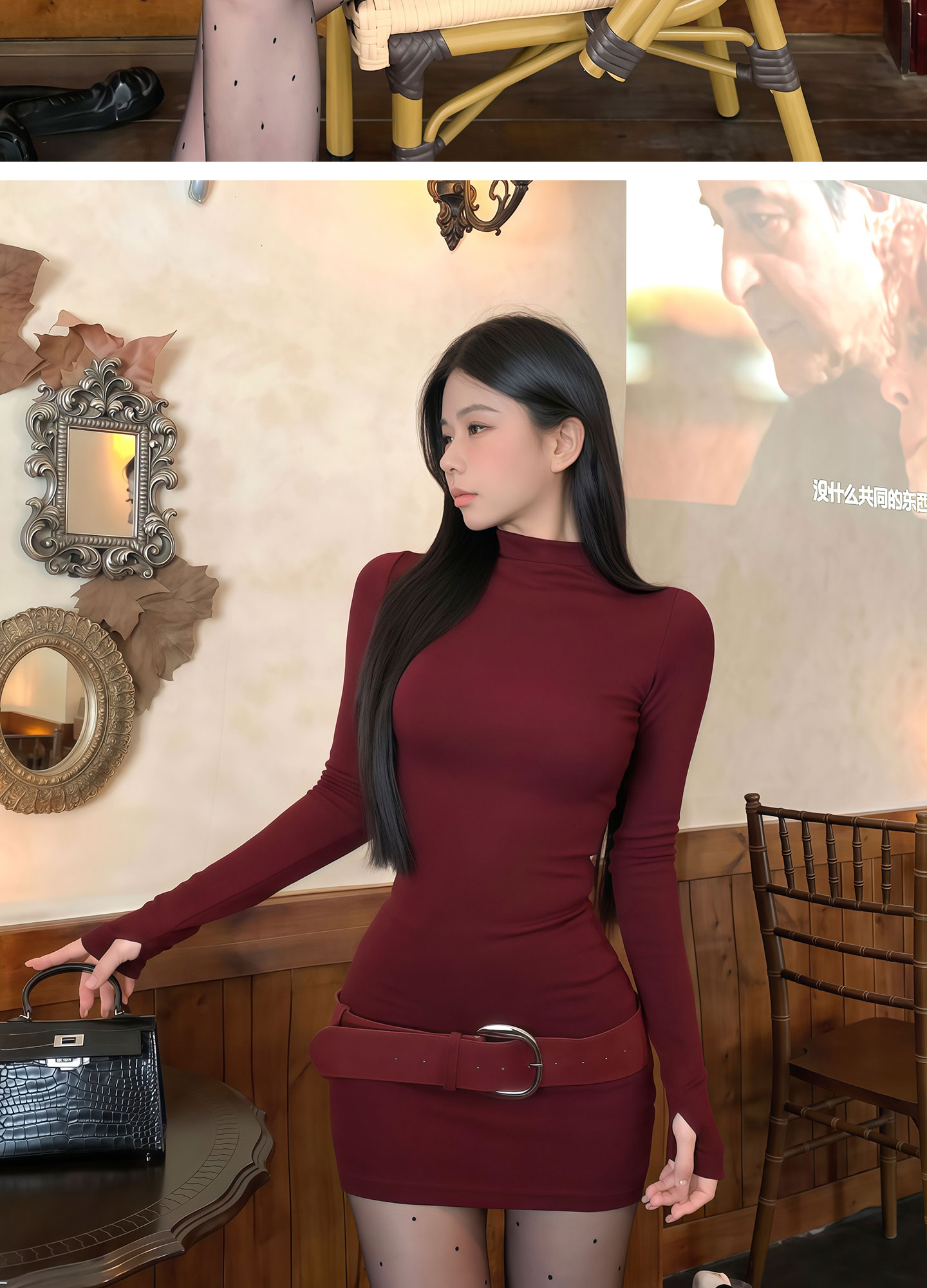 Home > 夜店裙、长袖连衣裙 > FA49272# 辣妹修身加绒半高领内搭打底长袖红色连衣裙女冬天配大衣的包臀裙 服裝批發女裝批發服飾貨源