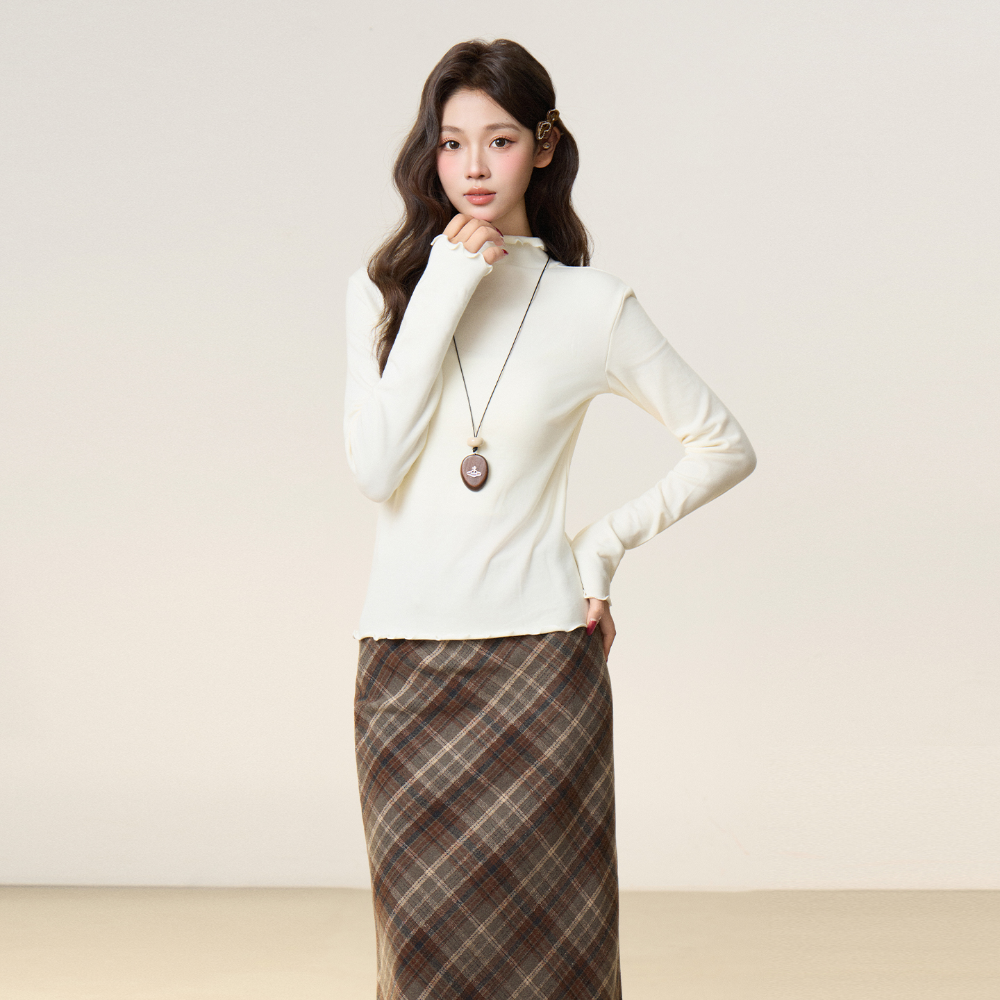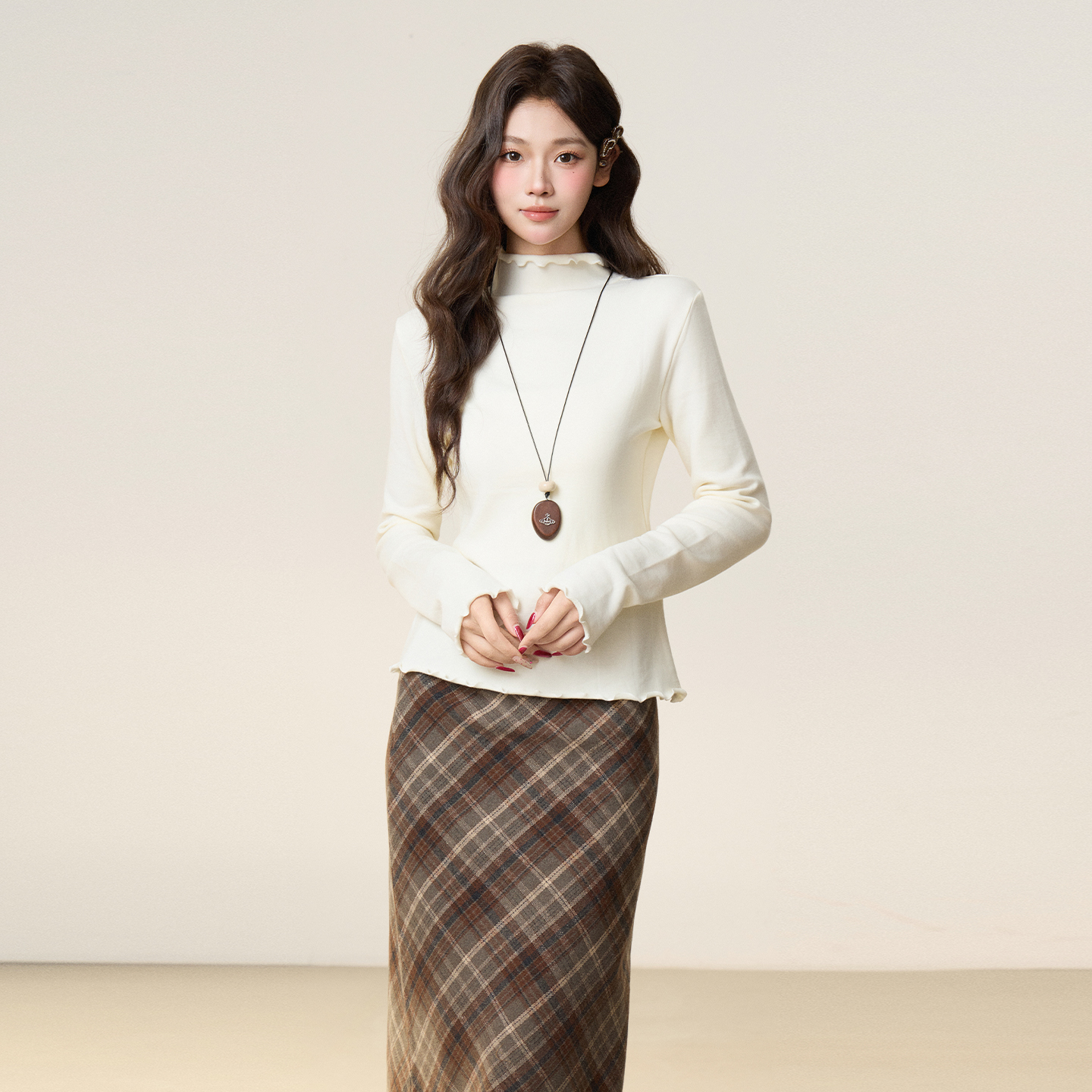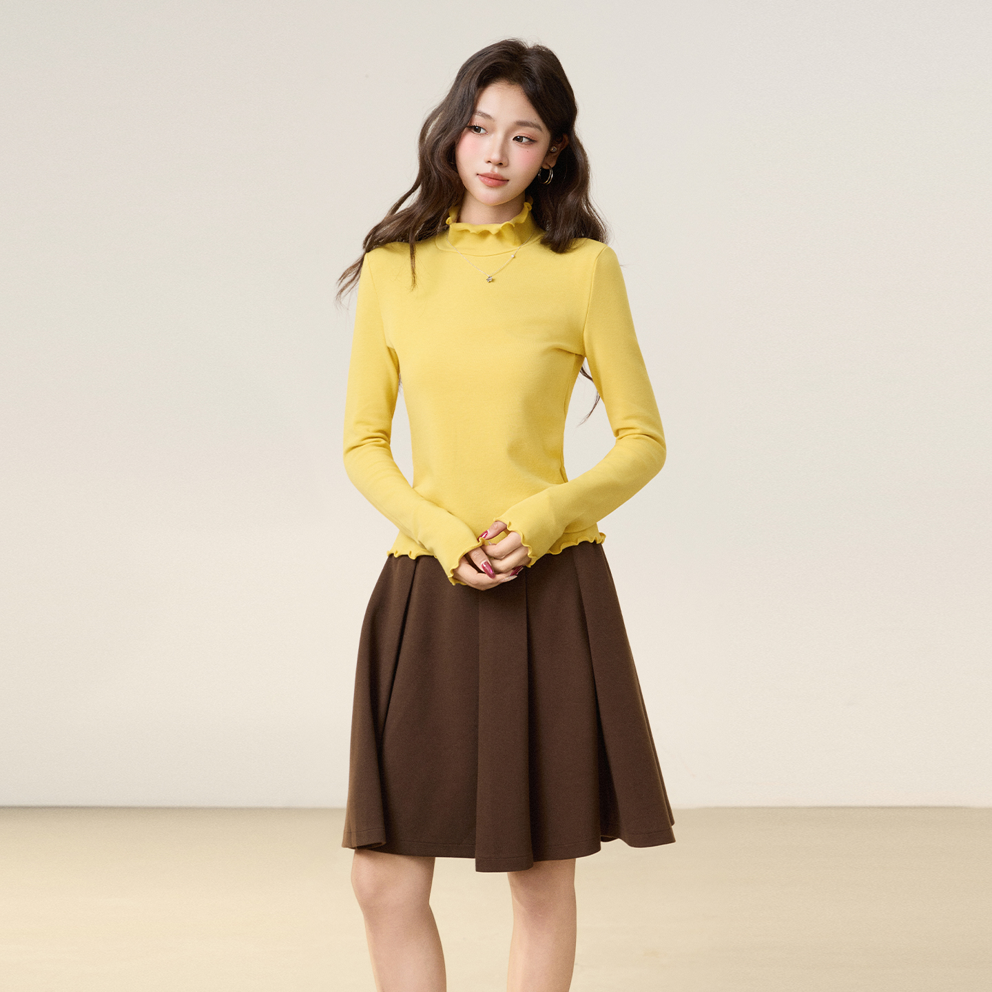 FA49600# 韩系木耳边半高领长袖针织衫女秋修身内搭打底衫显瘦上衣