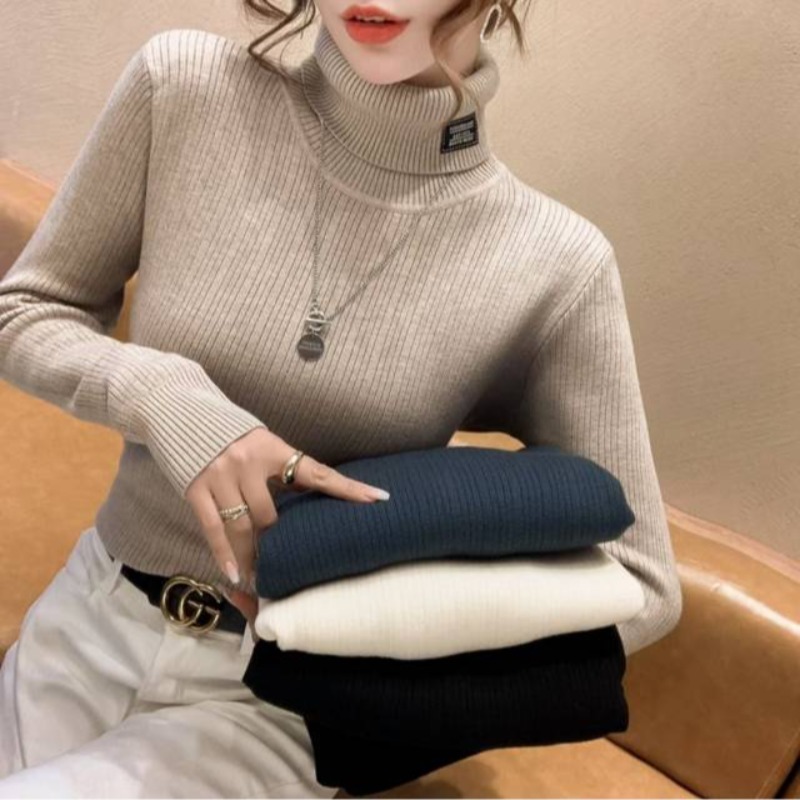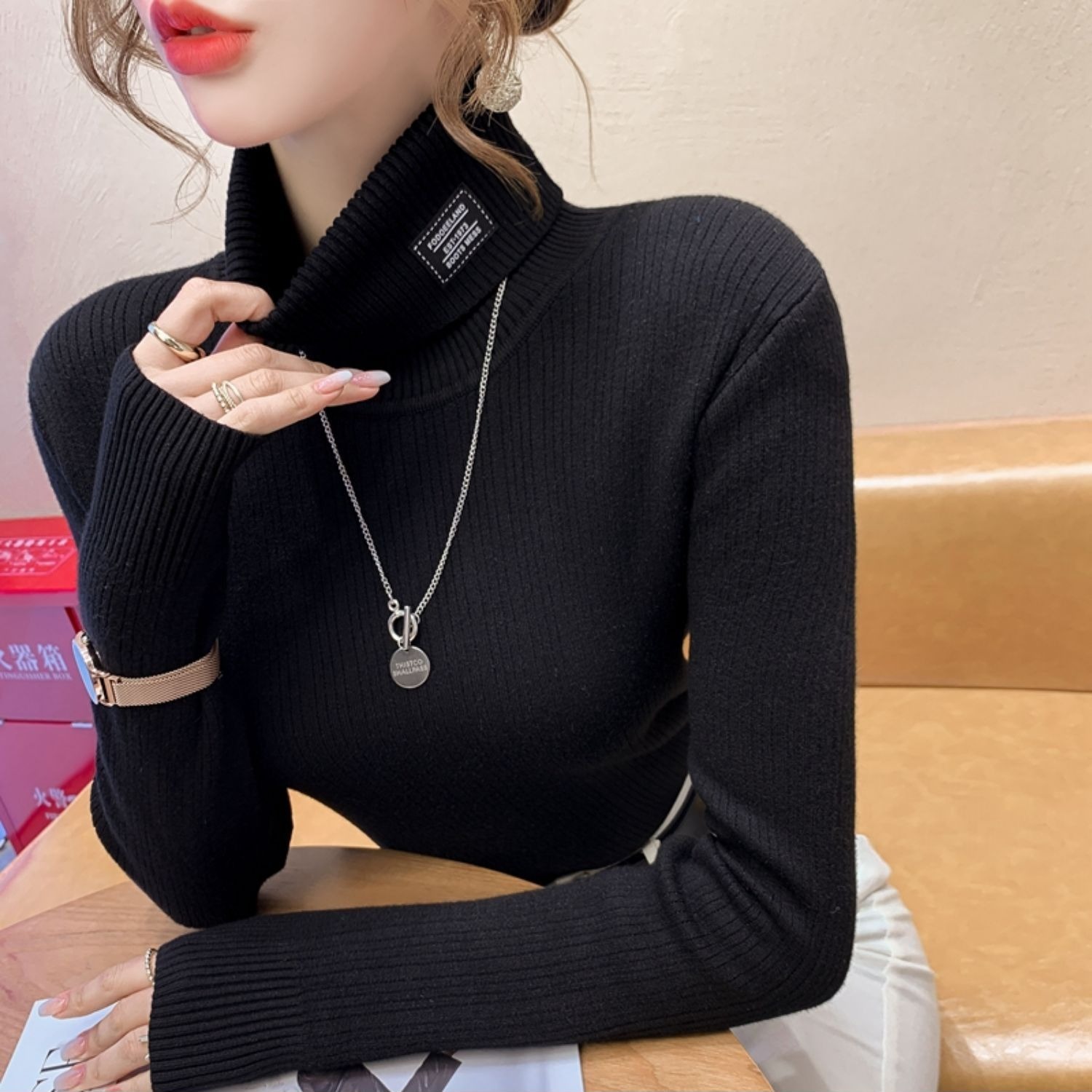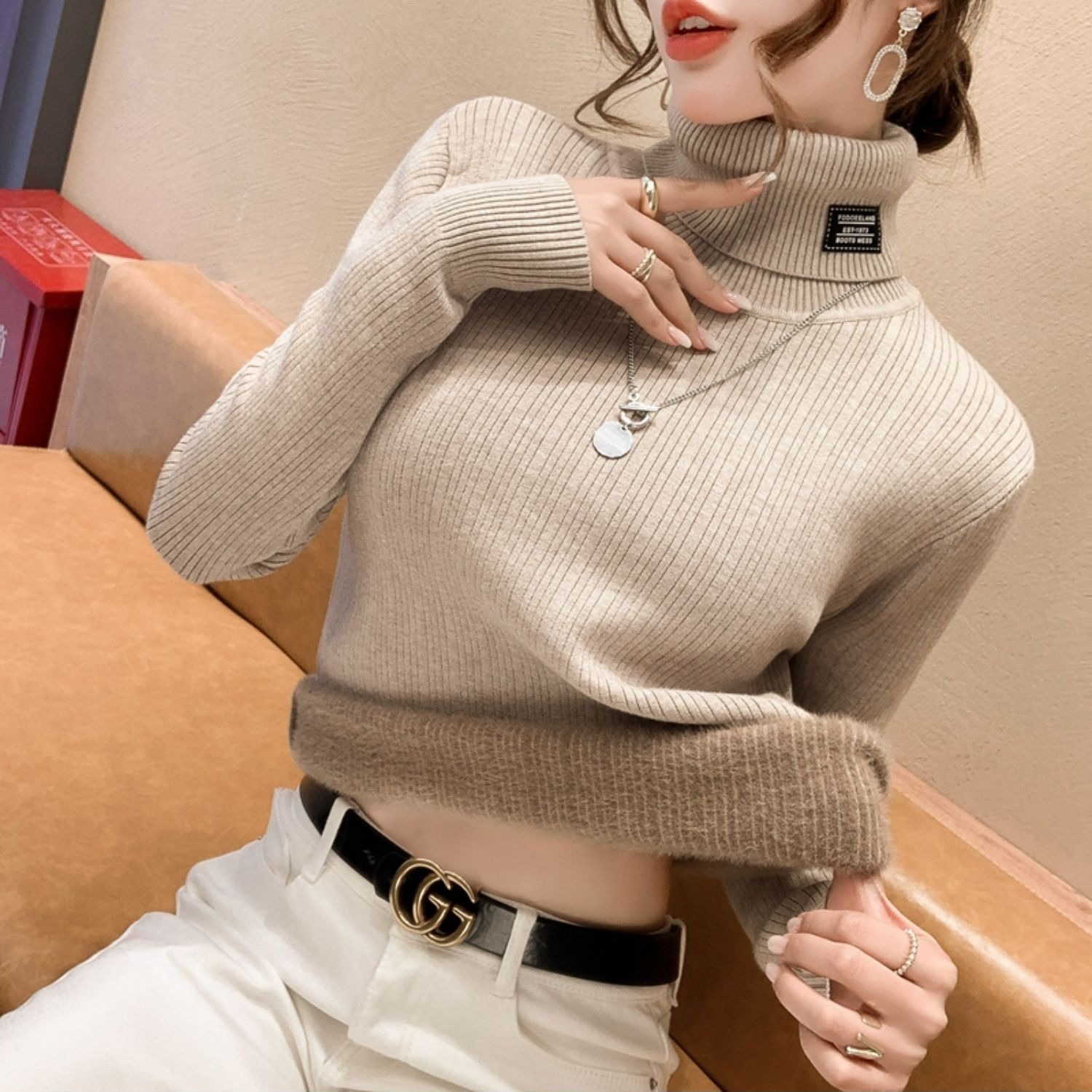 FA49614# 洋气一体绒女装新款毛衣百搭内搭加绒加厚高领针织衫