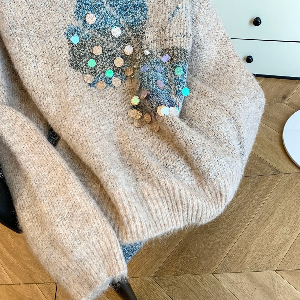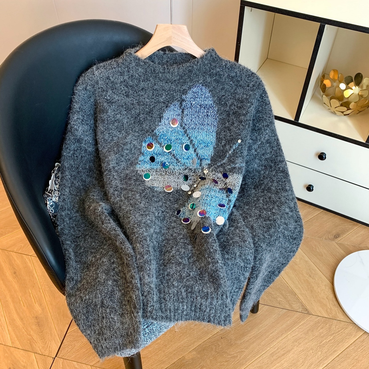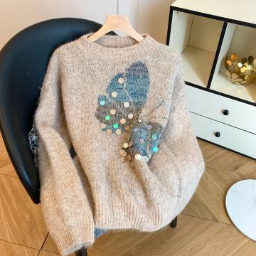 FA49617# 秋冬新款欧货蝴蝶亮片针织毛衣女慵懒风宽松显瘦洋气减龄女装