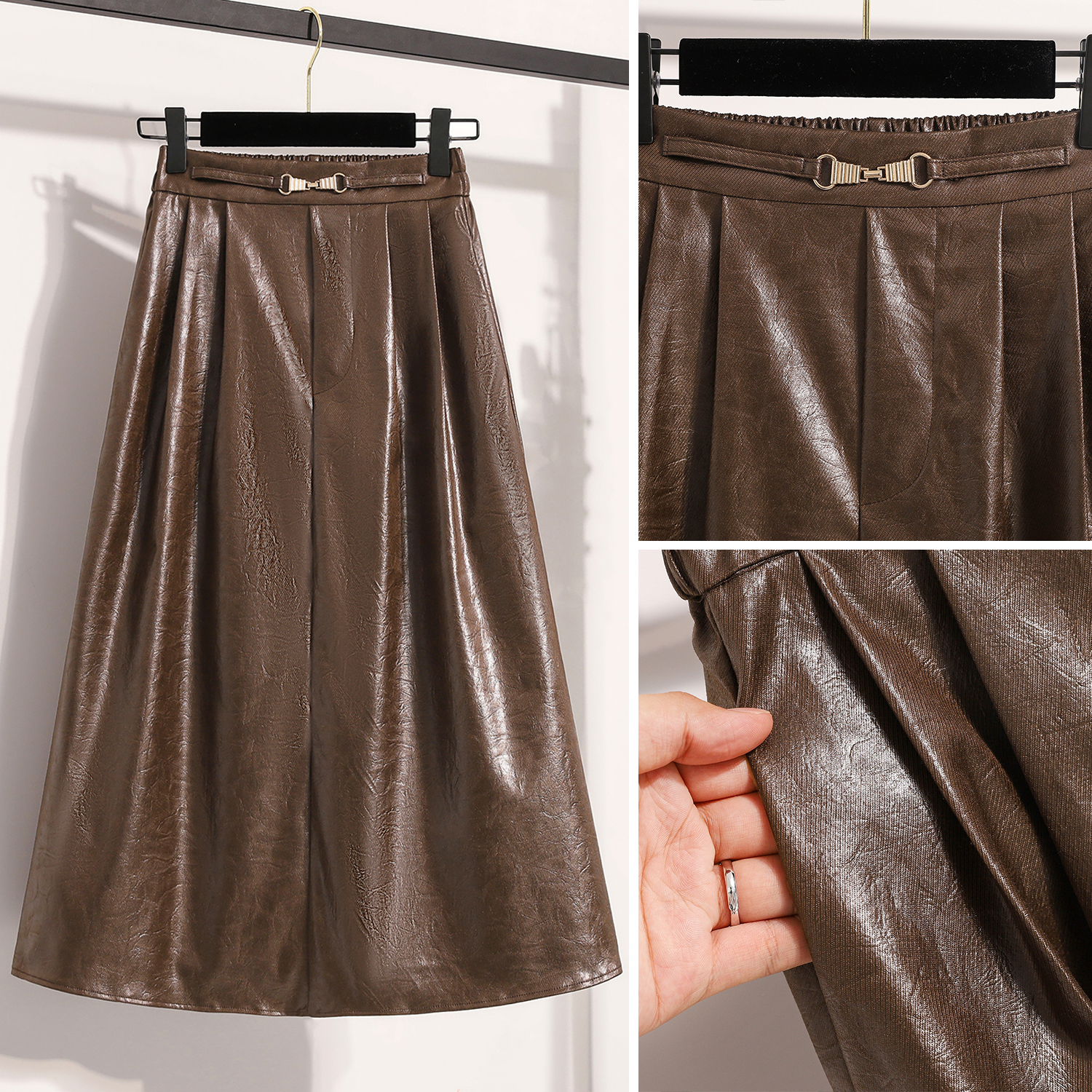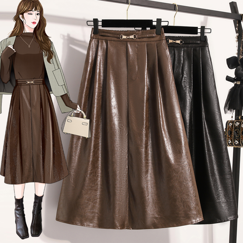 FA50078# 秋款大码垂坠感pu皮裙胖MM高腰半身裙显瘦百搭软皮a字皮伞裙 服裝批發女裝批發服飾貨源