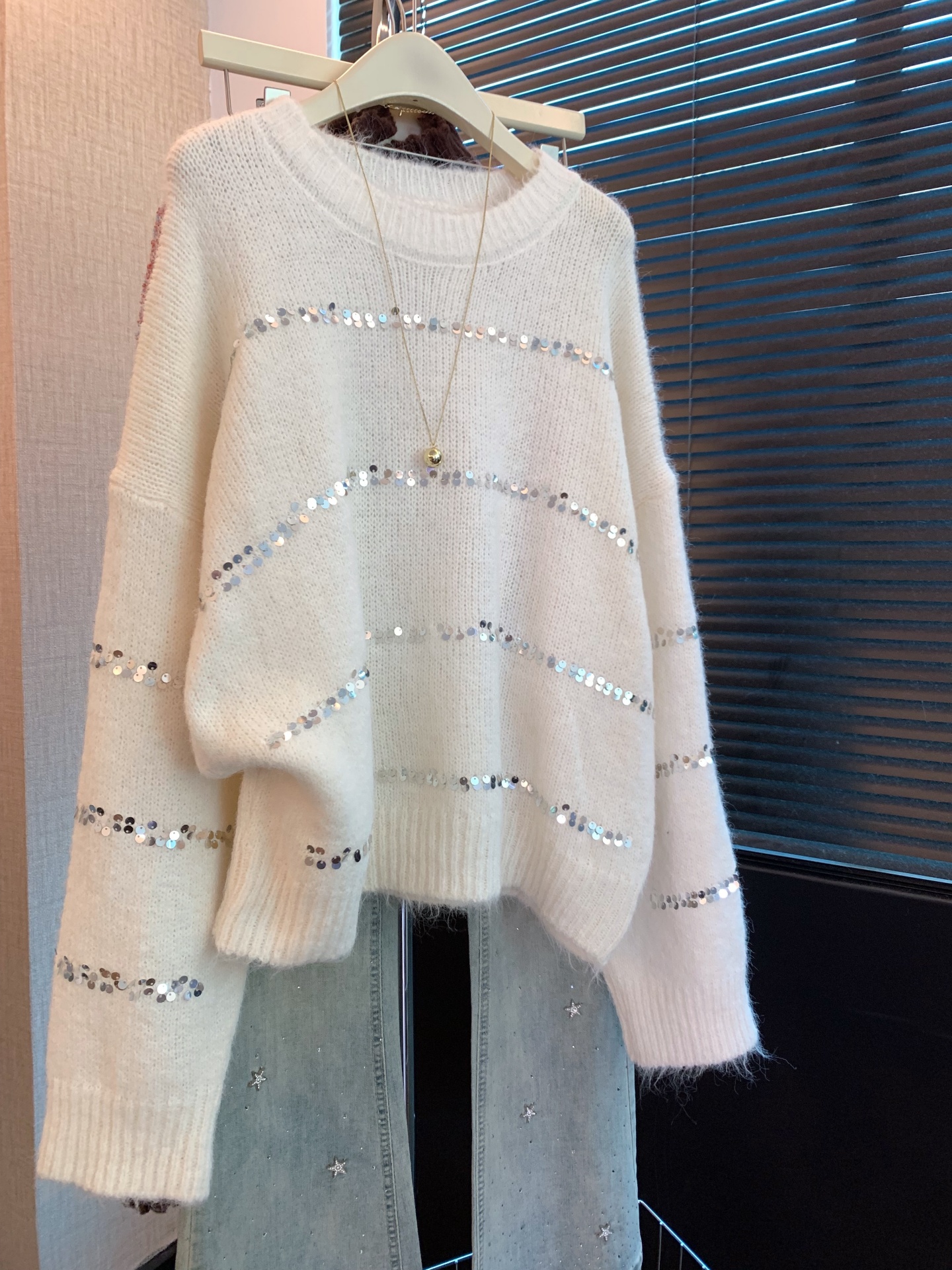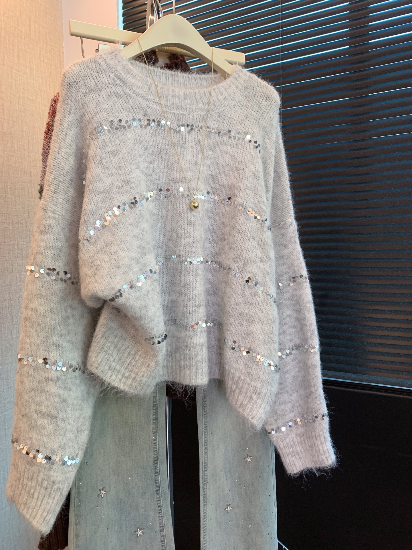 FA50082# 复古圆领毛衣女春秋秋季新款宽松软糯套头针织衫长袖上衣 服裝批發女裝批發服飾貨源