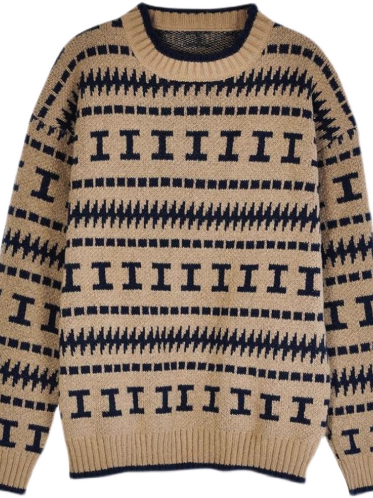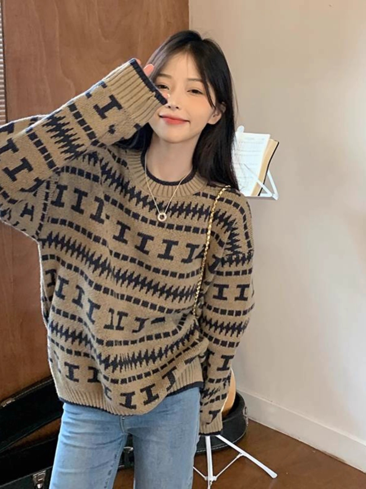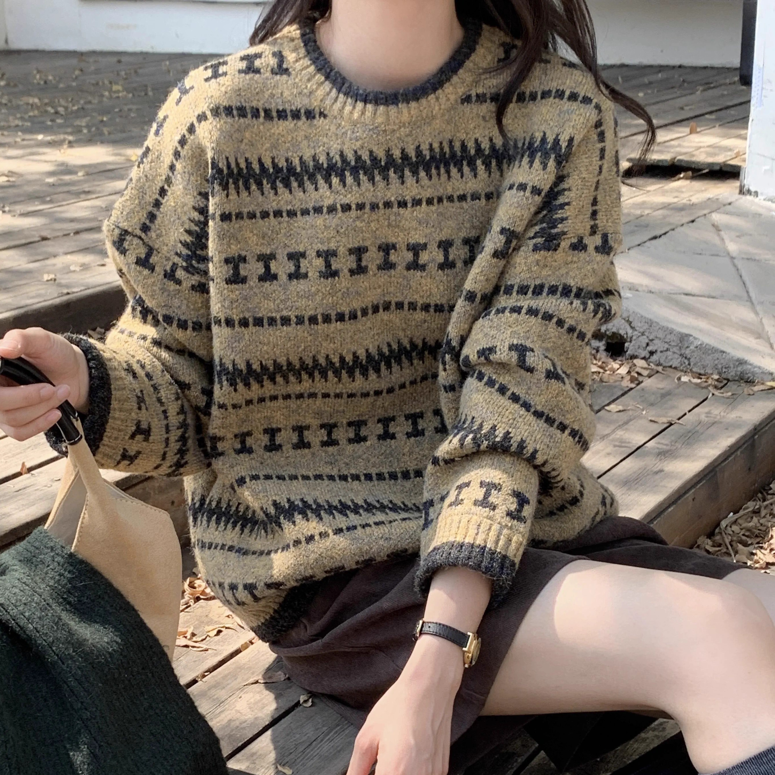FA50085# 北欧风小众费尔岛提花慵懒毛衣女冬季氛围感穿搭高级针织衫上衣 服裝批發女裝批發服飾貨源