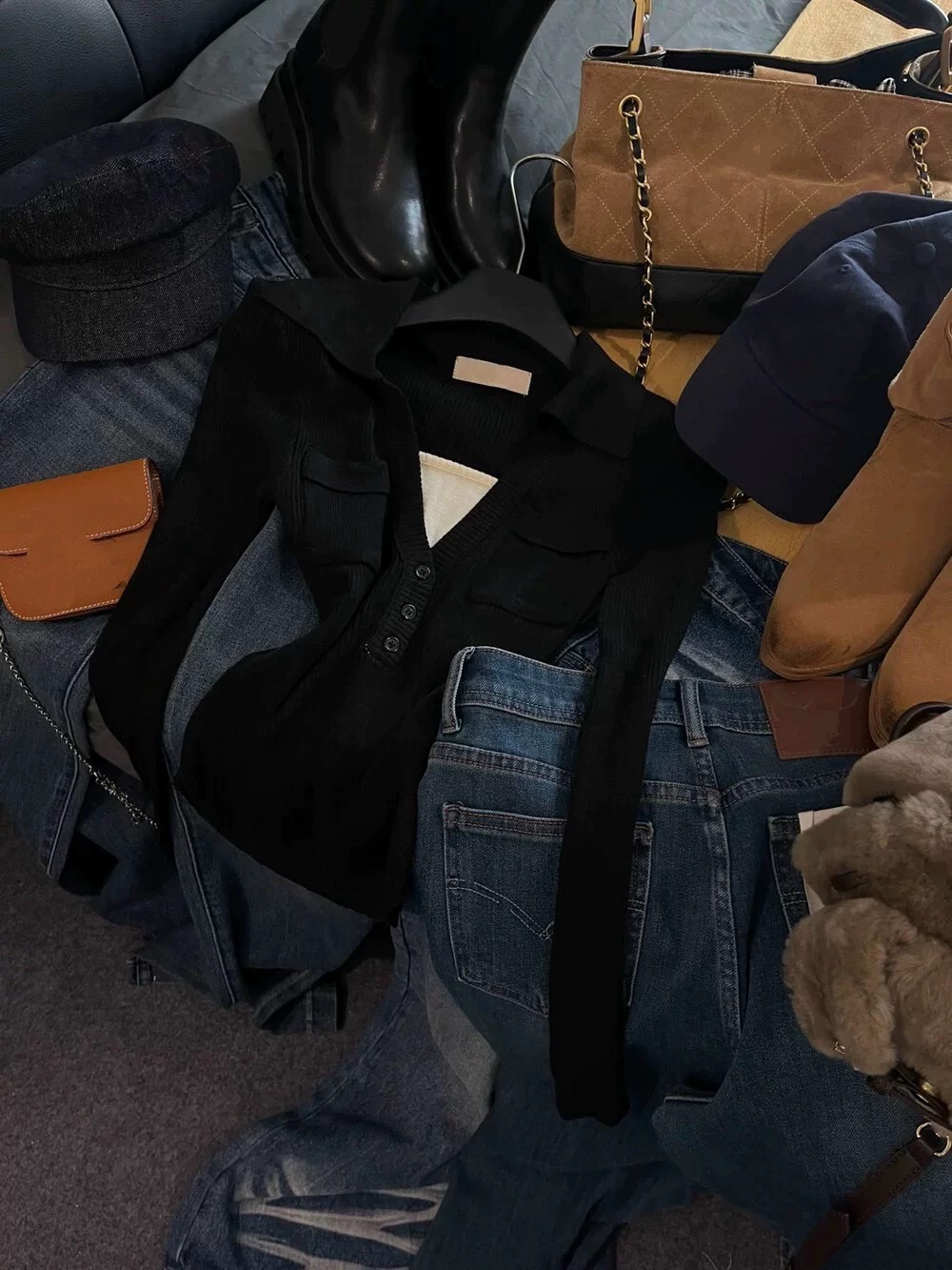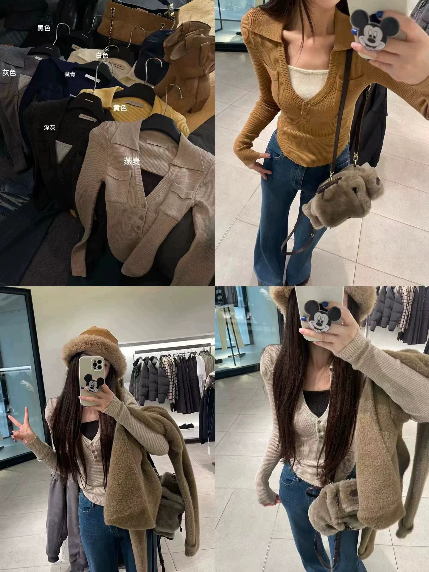 FA50112# 韩国东大门冬季新款时髦洋气百搭显瘦V领假两件针织衫上衣 服裝批發女裝批發服飾貨源