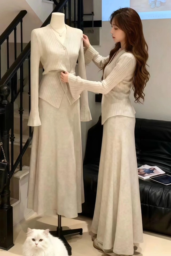 FA50170# 冬装搭配一整套独特超好看韩系穿搭别致绝美减龄针织毛衣套装 服裝批發女裝批發服飾貨源