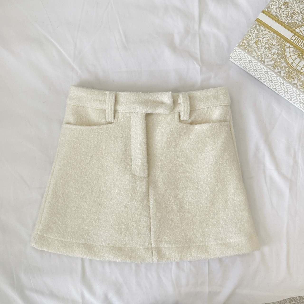 FA50297# 小香风白色羊羔毛呢半身裙女秋冬防走光包臀短裙 服裝批發女裝批發服飾貨源