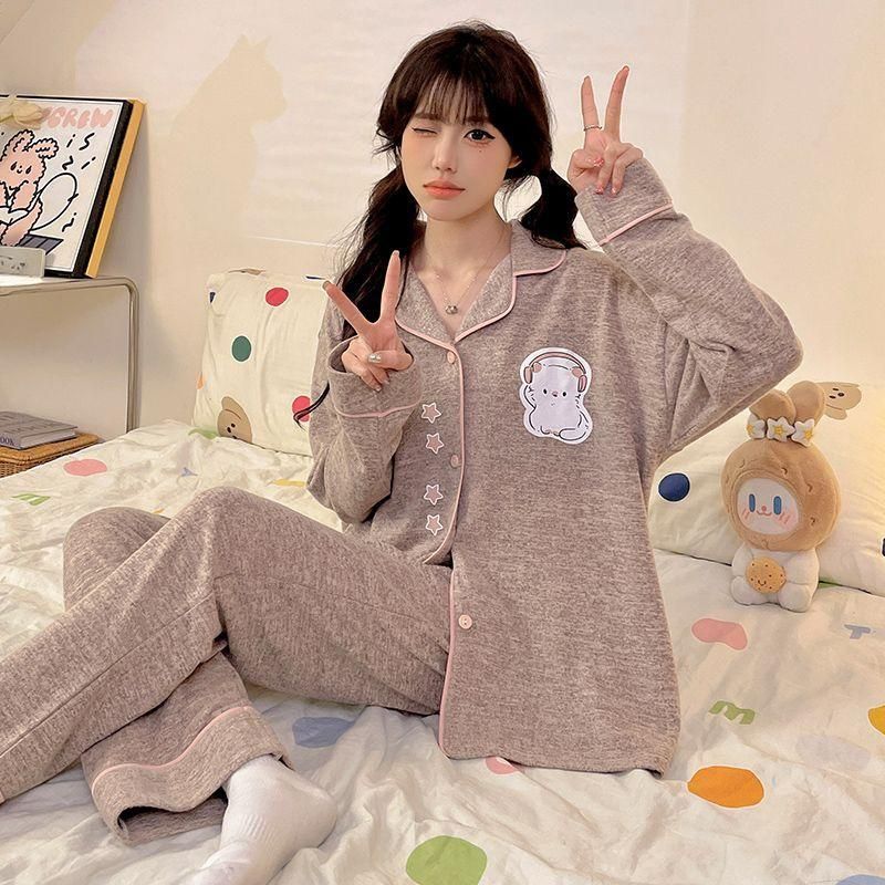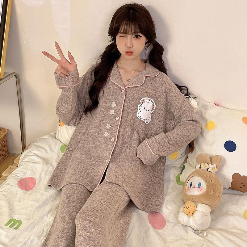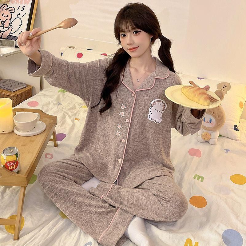 FA50355# 秋季羊绒开衫长袖长裤毛巾绣女士家居服网红直播高品 服裝批發女裝批發服飾貨源
