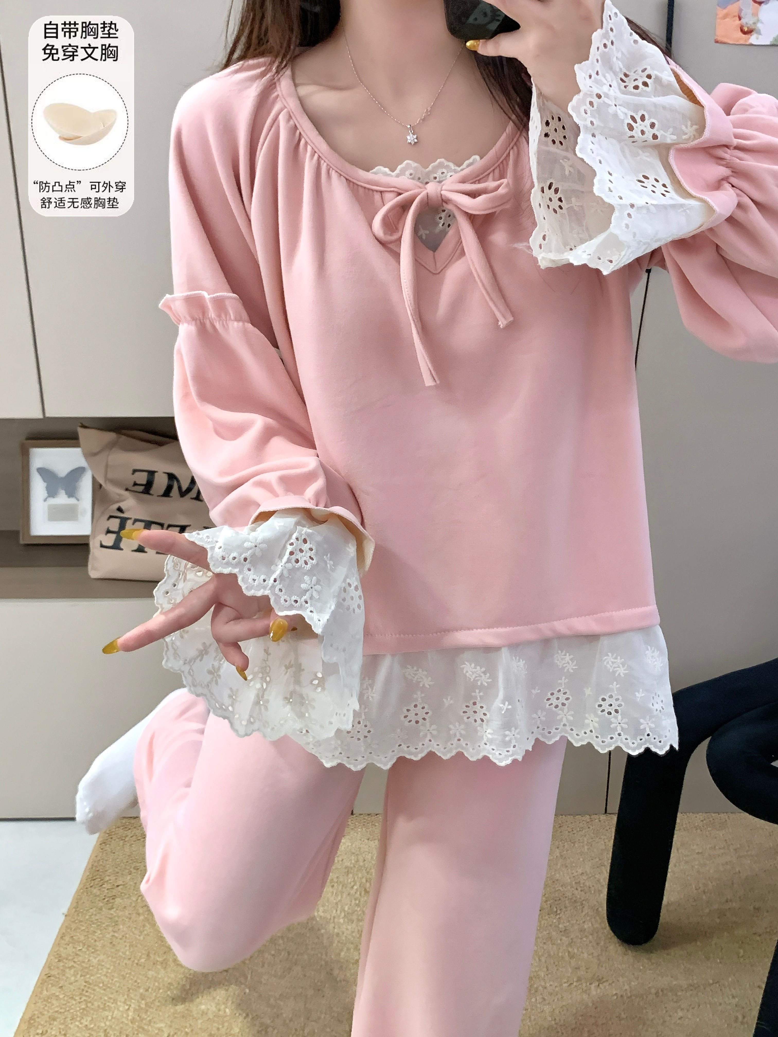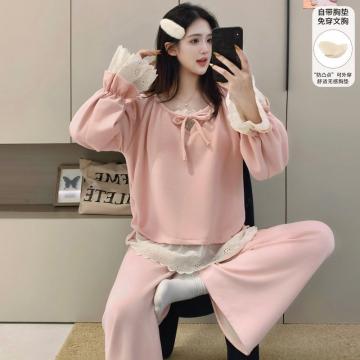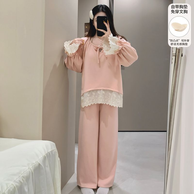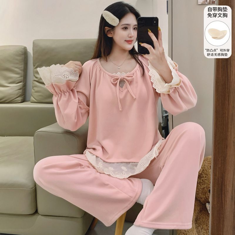 FA50363# 冬季直播爆款羊绒带胸垫粉色蕾丝花边高定宽松休闲可外穿家居服 服裝批發女裝批發服飾貨源