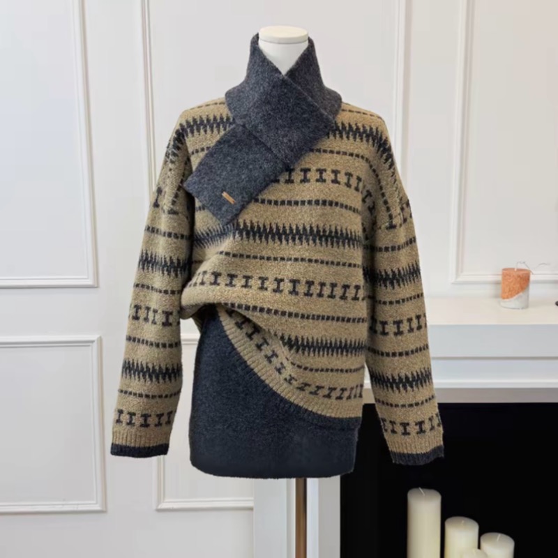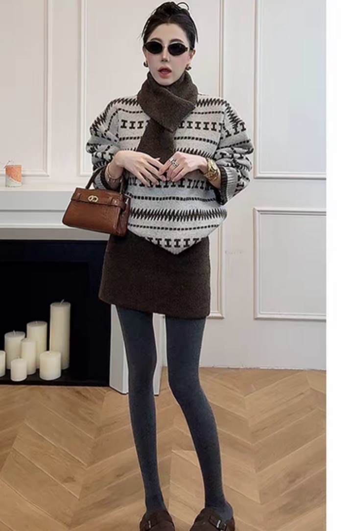 FA50391# 秋冬高品毛衣围脖上衣短裙三件套 服裝批發女裝批發服飾貨源
