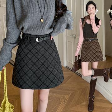 FA50405# 秋冬新款加厚毛呢复古大格子小个子包裙子防走光A字裙一步裙 服裝批發女裝批發服飾貨源
