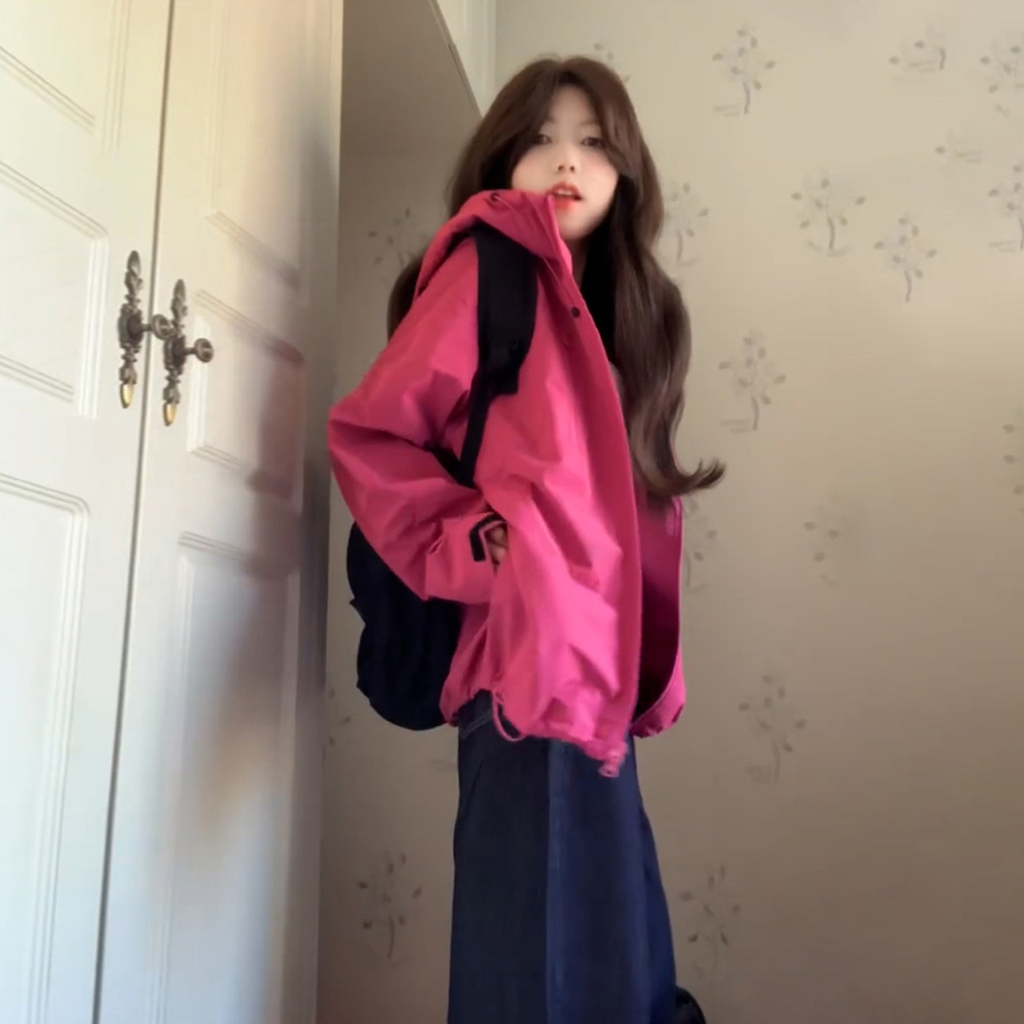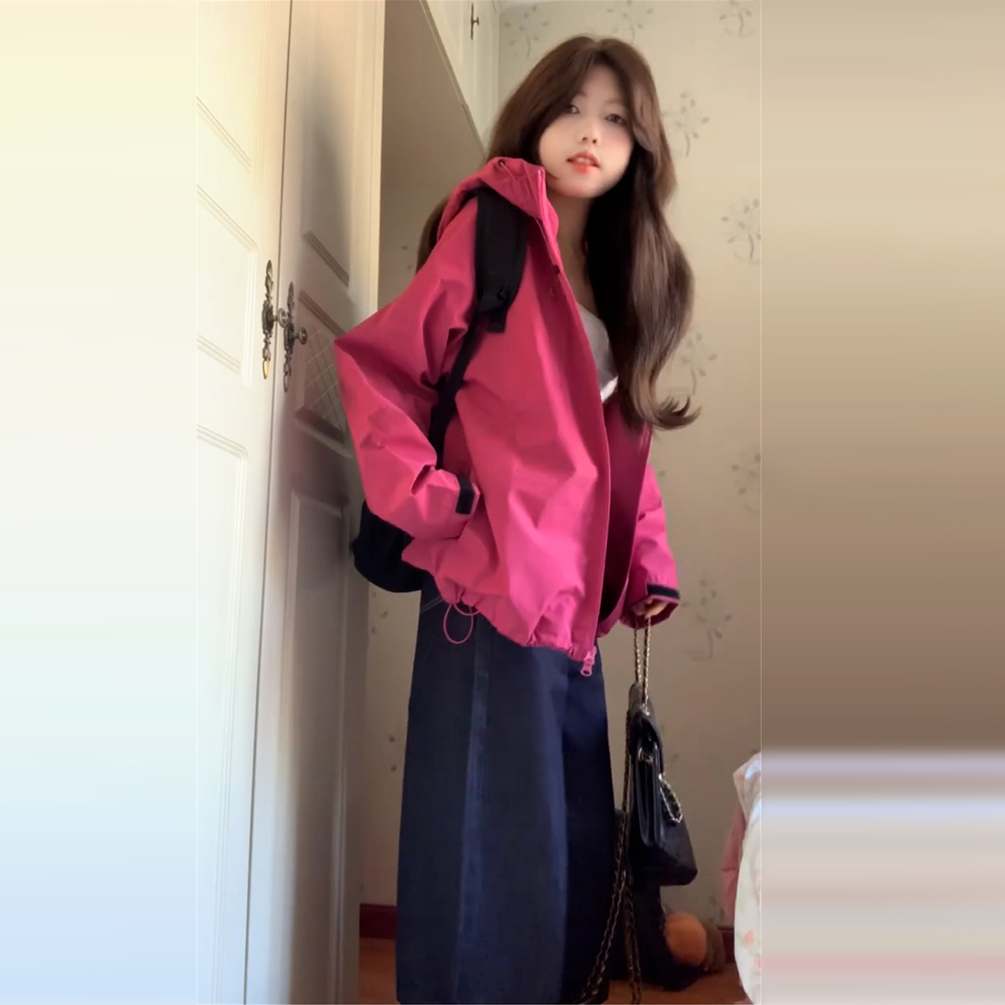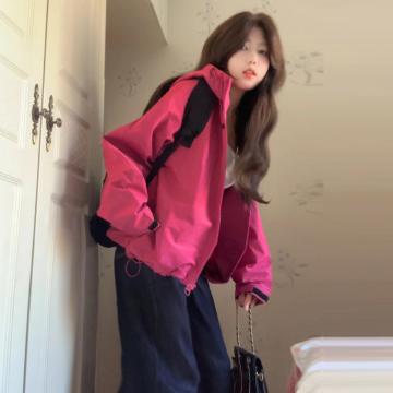 FA50408# 玫红色冲锋衣外套女登山服新款夏季防晒衣美式秋户外运动穿搭 服裝批發女裝批發服飾貨源