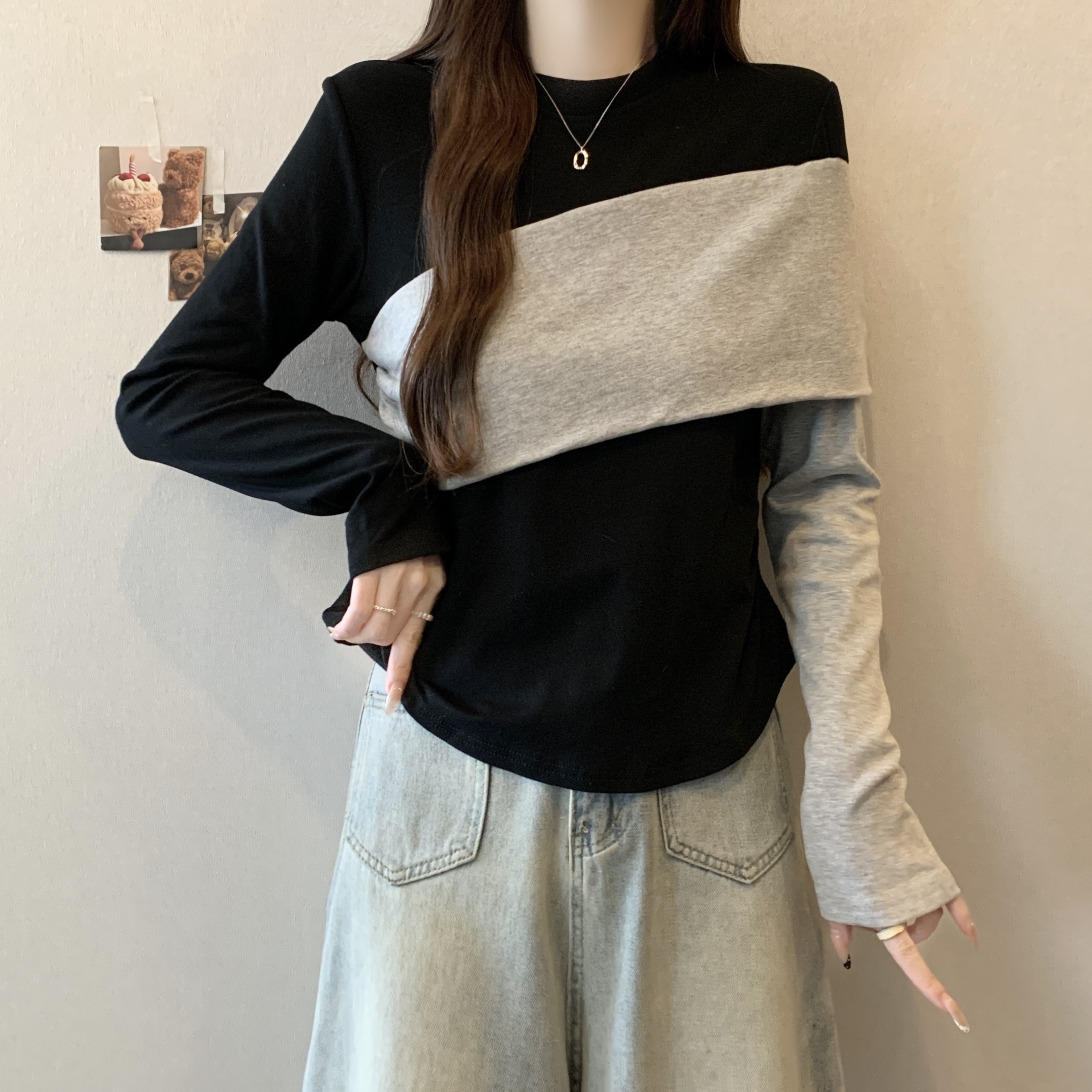 Home > 长袖T恤 > FA50476# 大码胖mm撞色内搭打底衫长袖T恤女秋冬显瘦时尚洋气上衣 服裝批發女裝批發服飾貨源