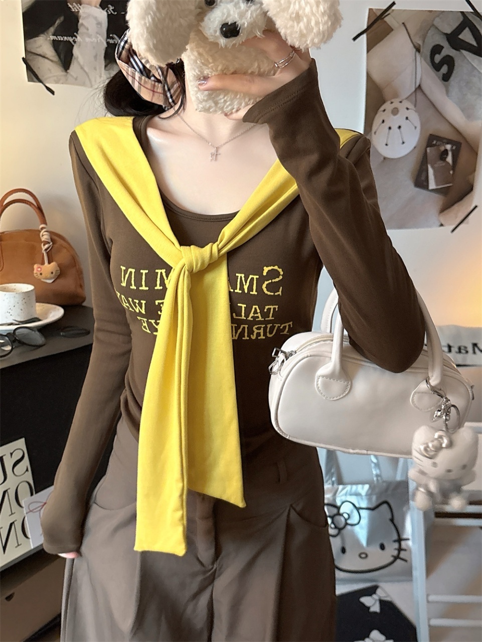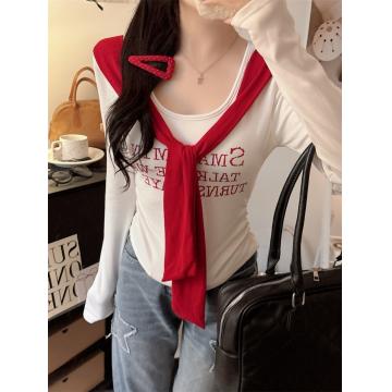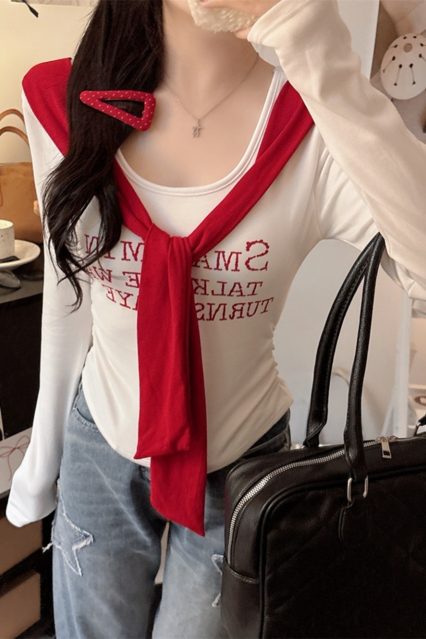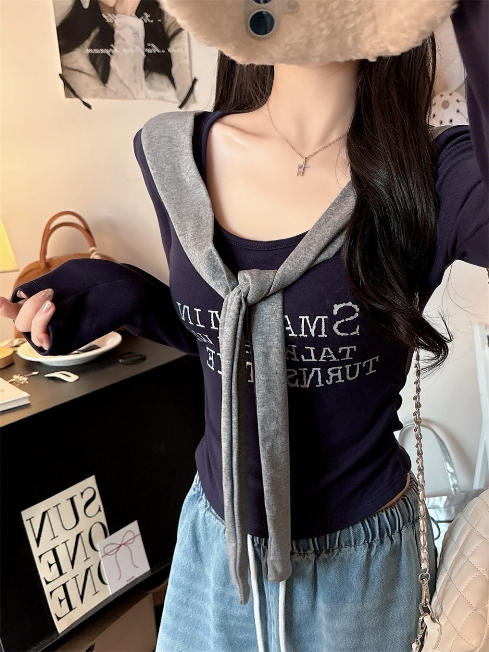 美式辣妹圆领长袖T恤设计感内搭修身打底衫短款上衣潮 服裝批發女裝批發服飾貨源