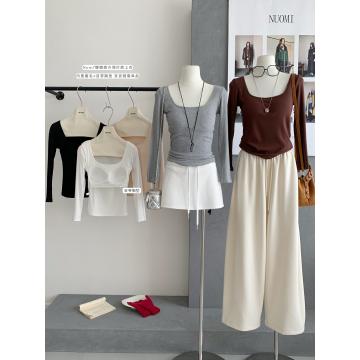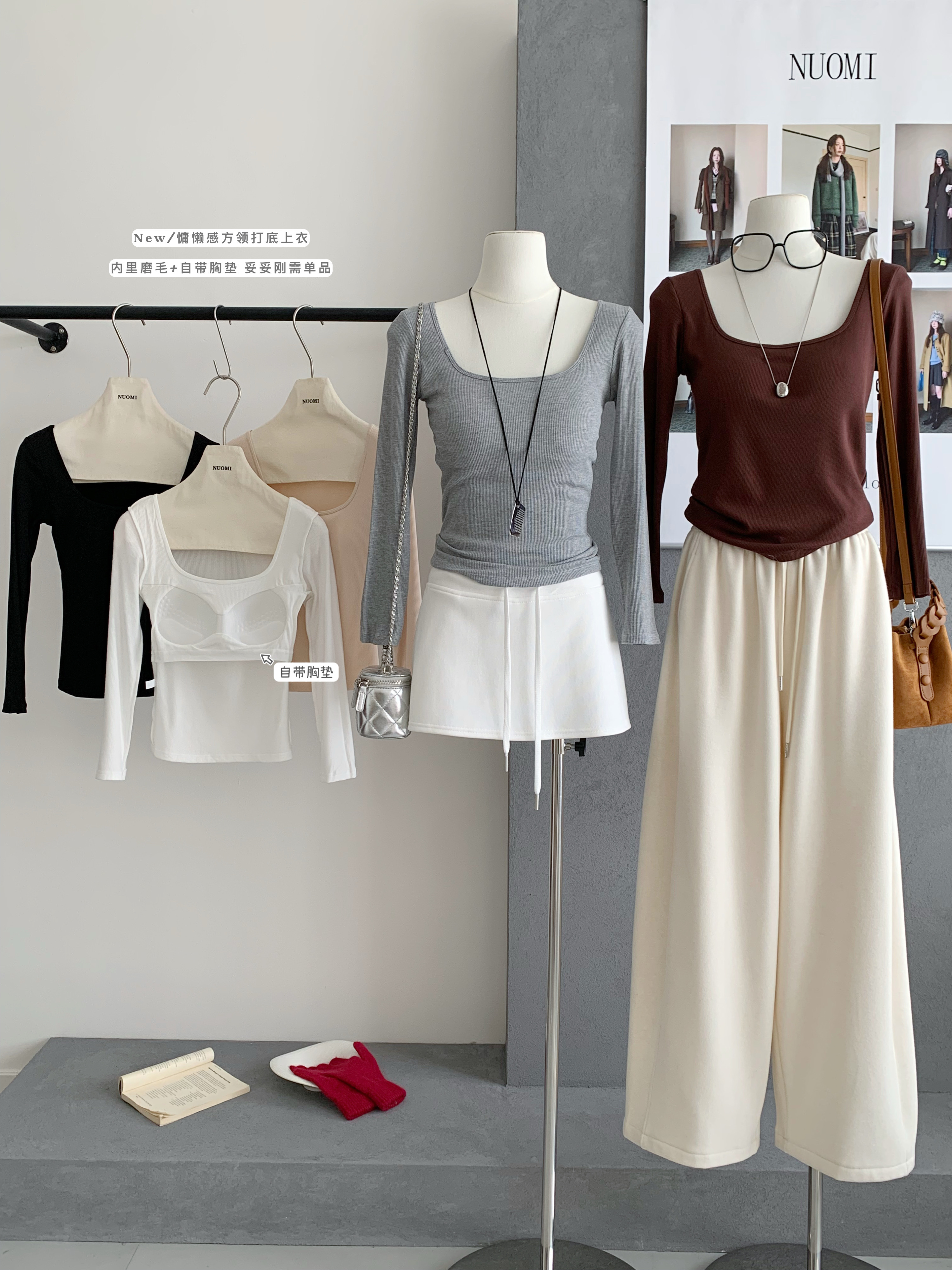 带胸垫弹力磨毛方领针织衫女秋季新款长袖加绒上衣潮 服裝批發女裝批發服飾貨源