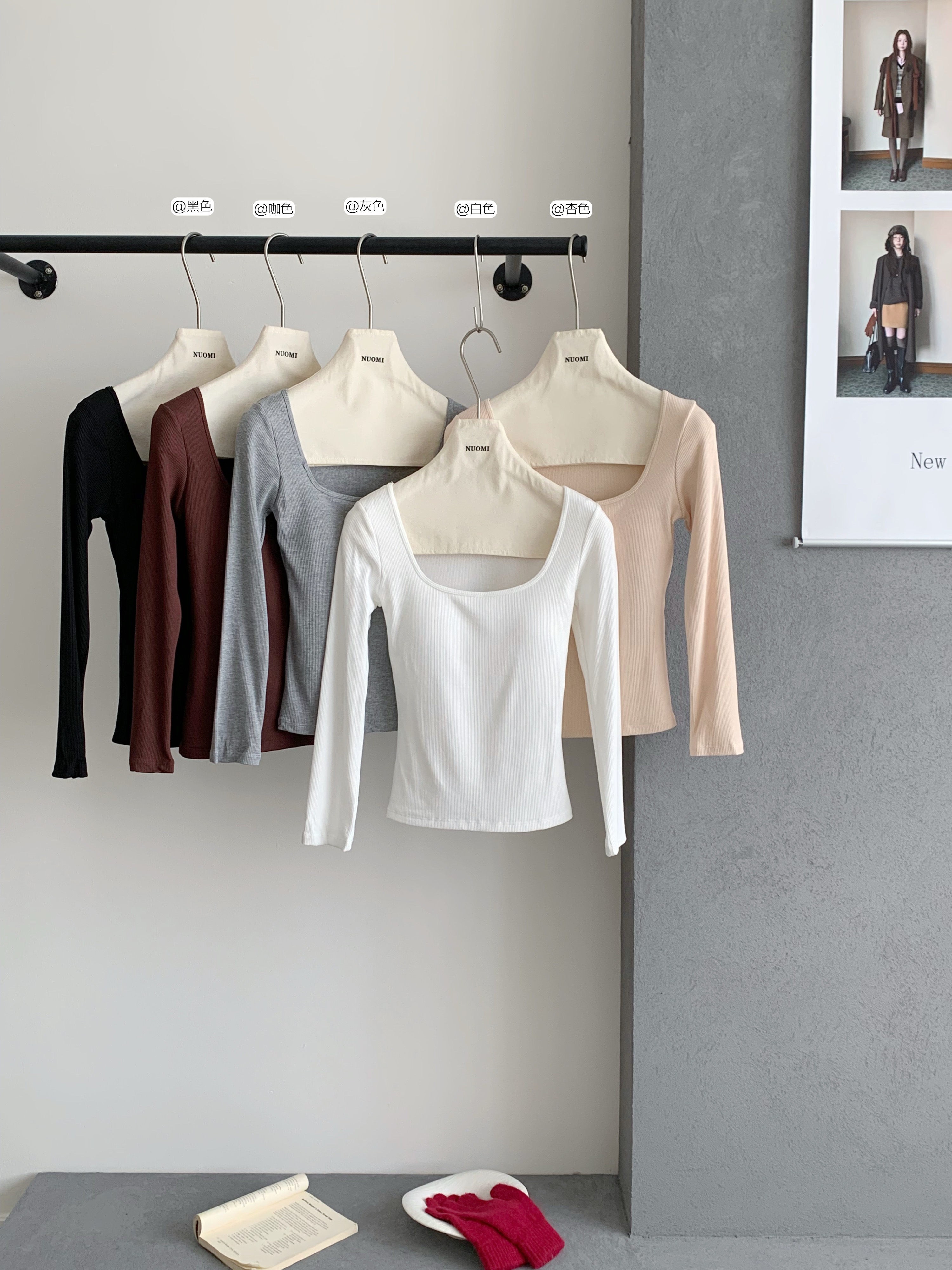 FA50526# 带胸垫弹力磨毛方领针织衫女秋季新款长袖加绒上衣潮 服裝批發女裝批發服飾貨源