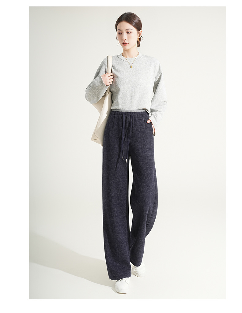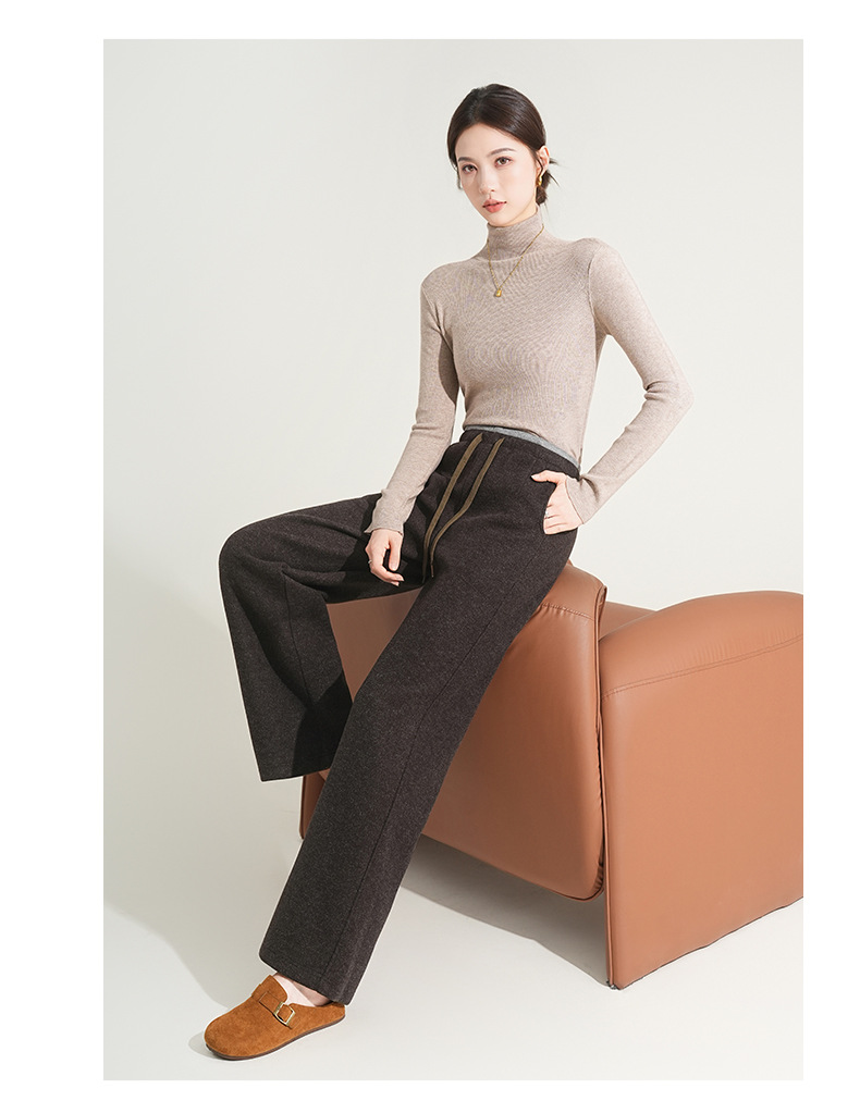 FA50717# 绵羊毛直筒休闲裤女秋季小个子显瘦高腰流光长裤批发