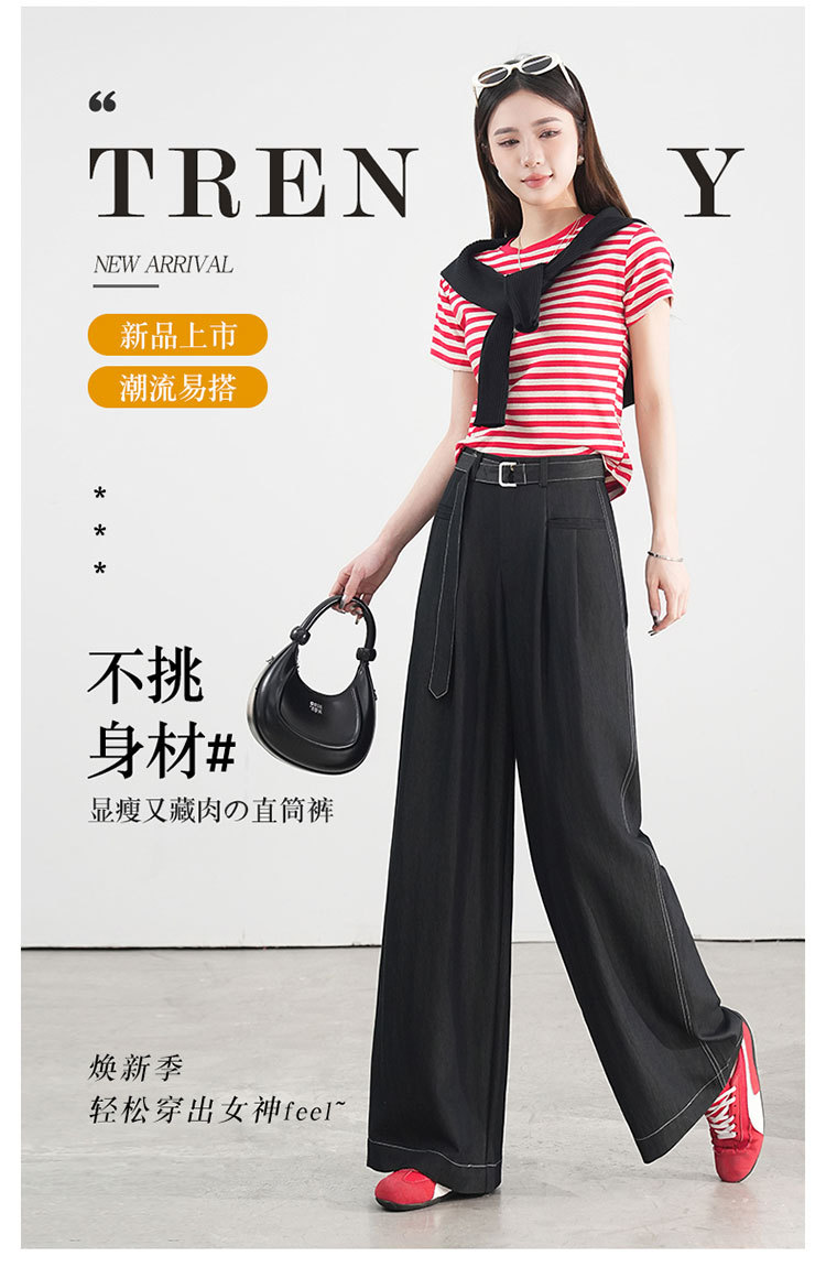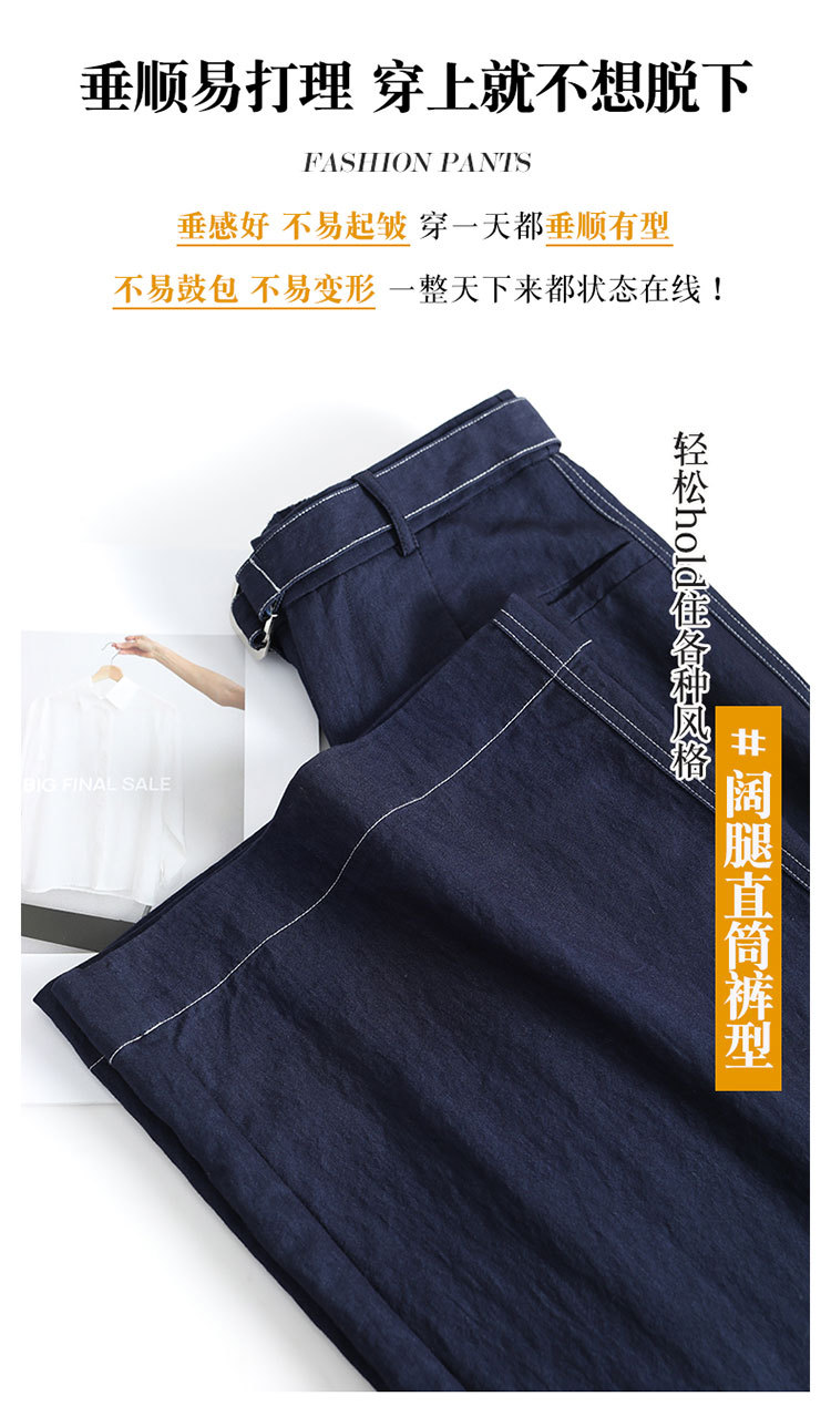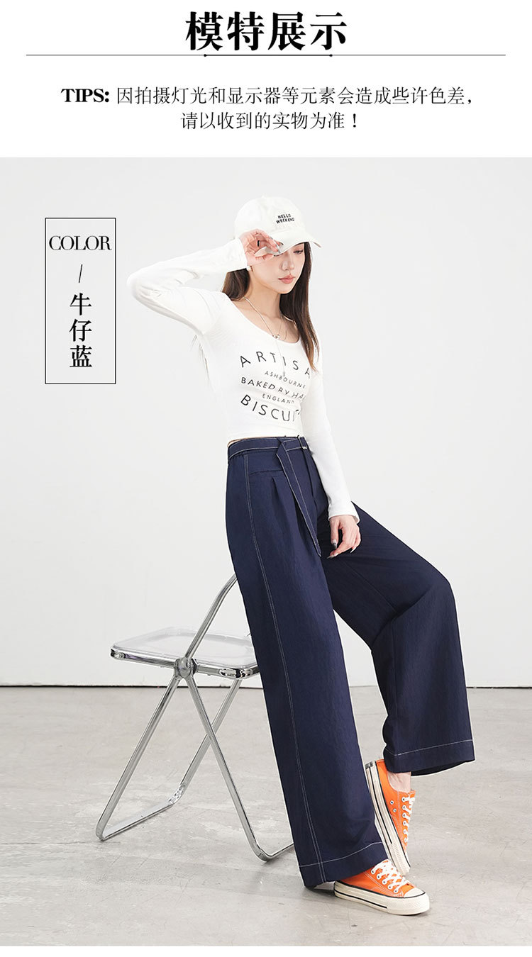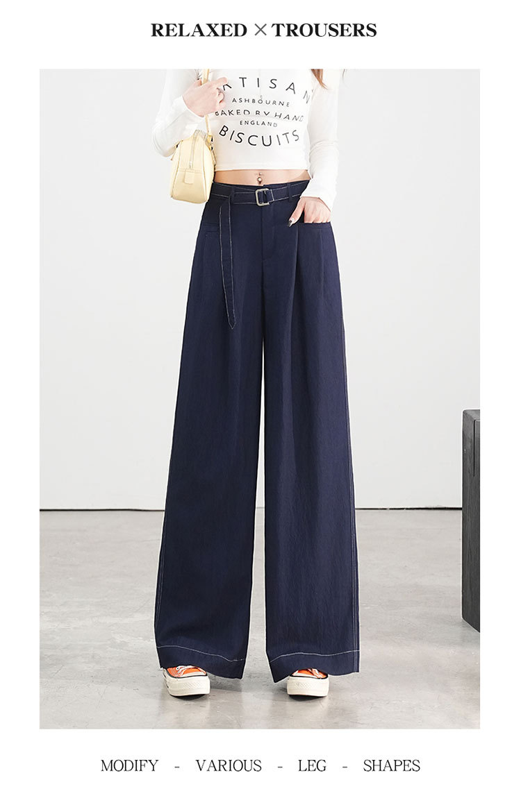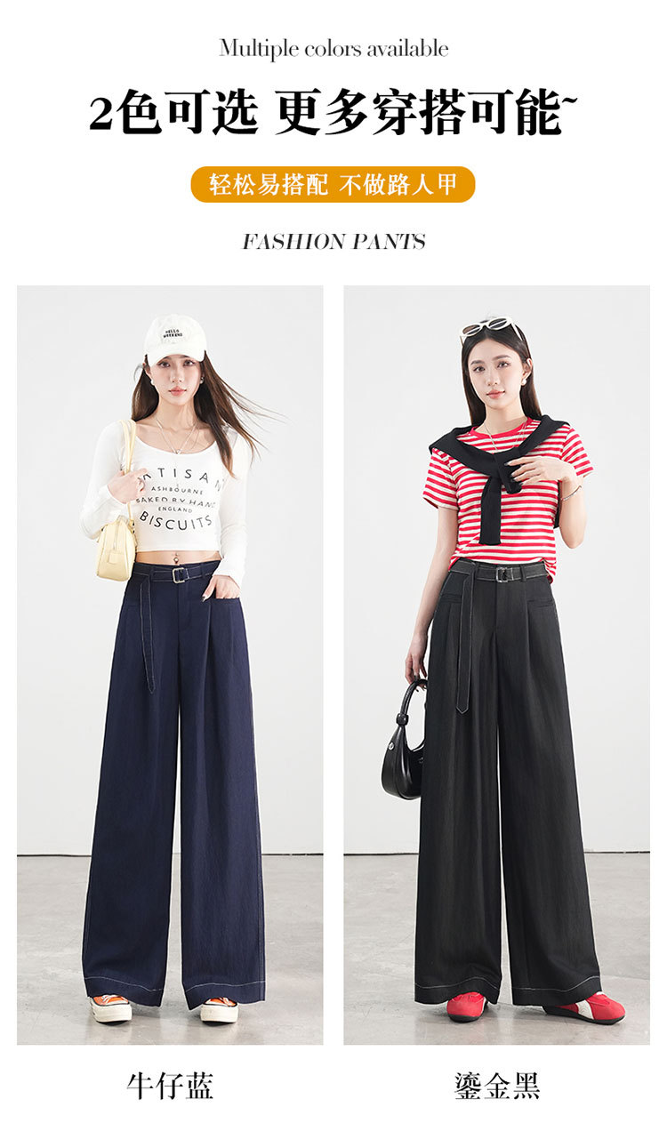 FA50724# 阔腿牛仔裤女2025新款蓝色有腰带显瘦显高百搭高级感春季休闲裤子