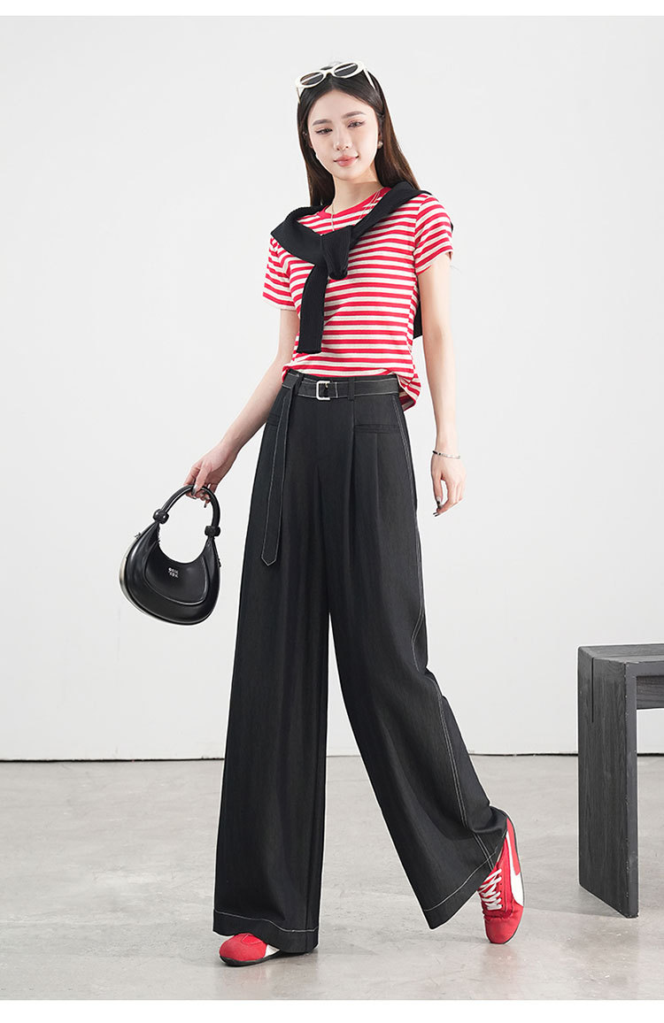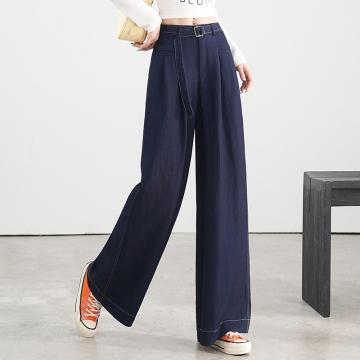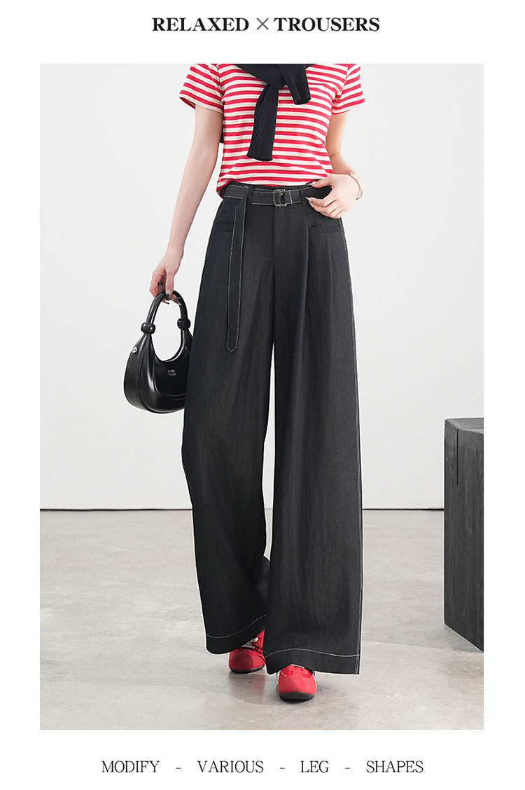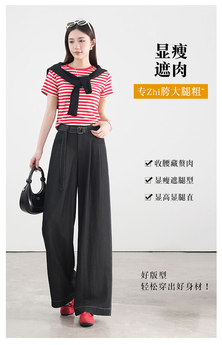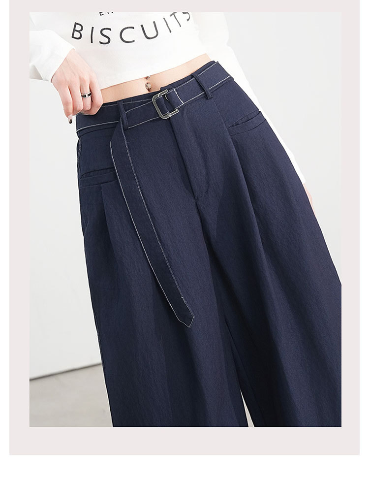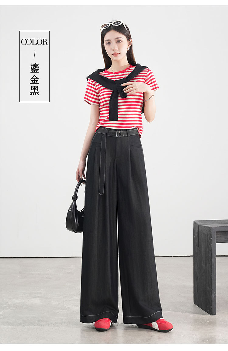 FA50724# 阔腿牛仔裤女2025新款蓝色有腰带显瘦显高百搭高级感春季休闲裤子