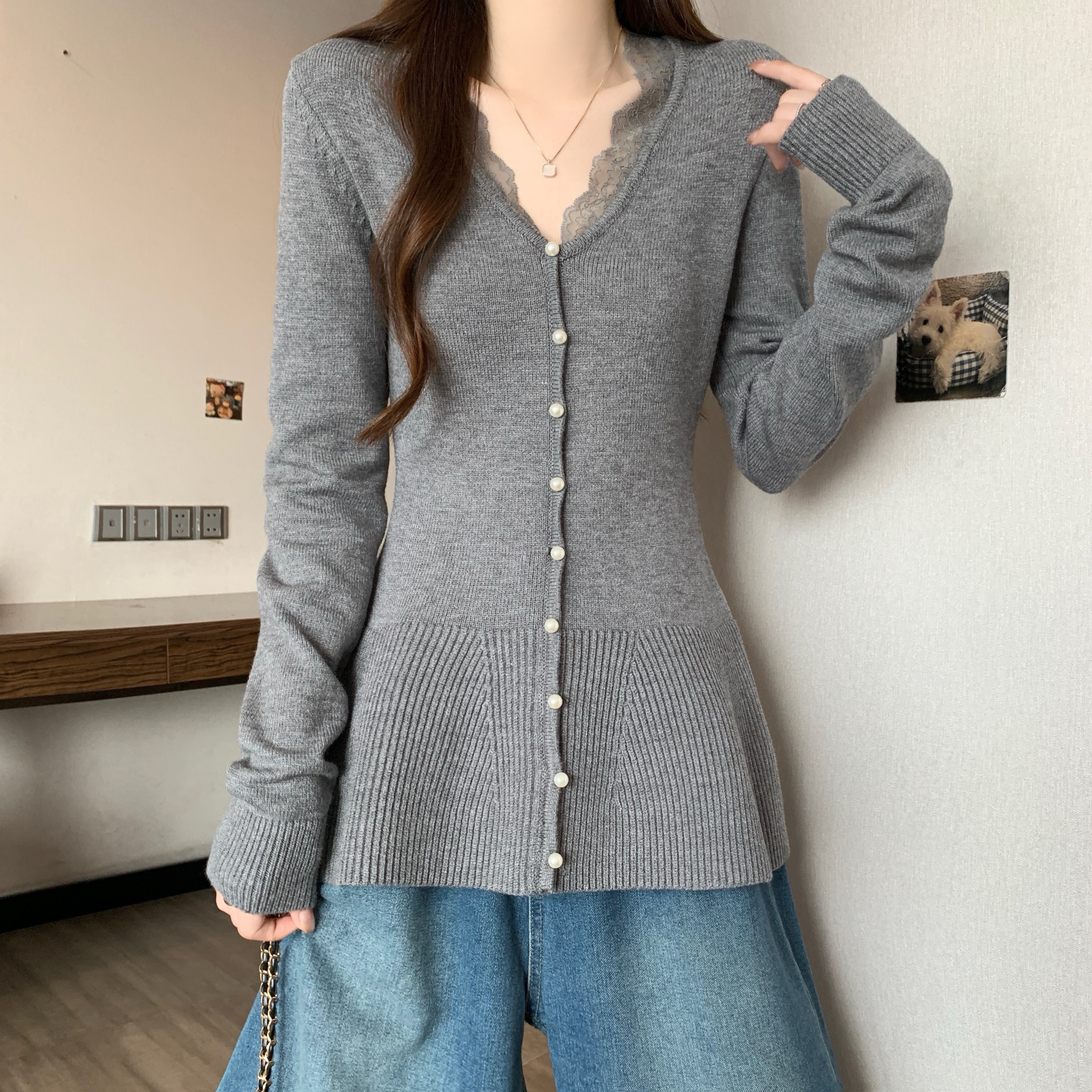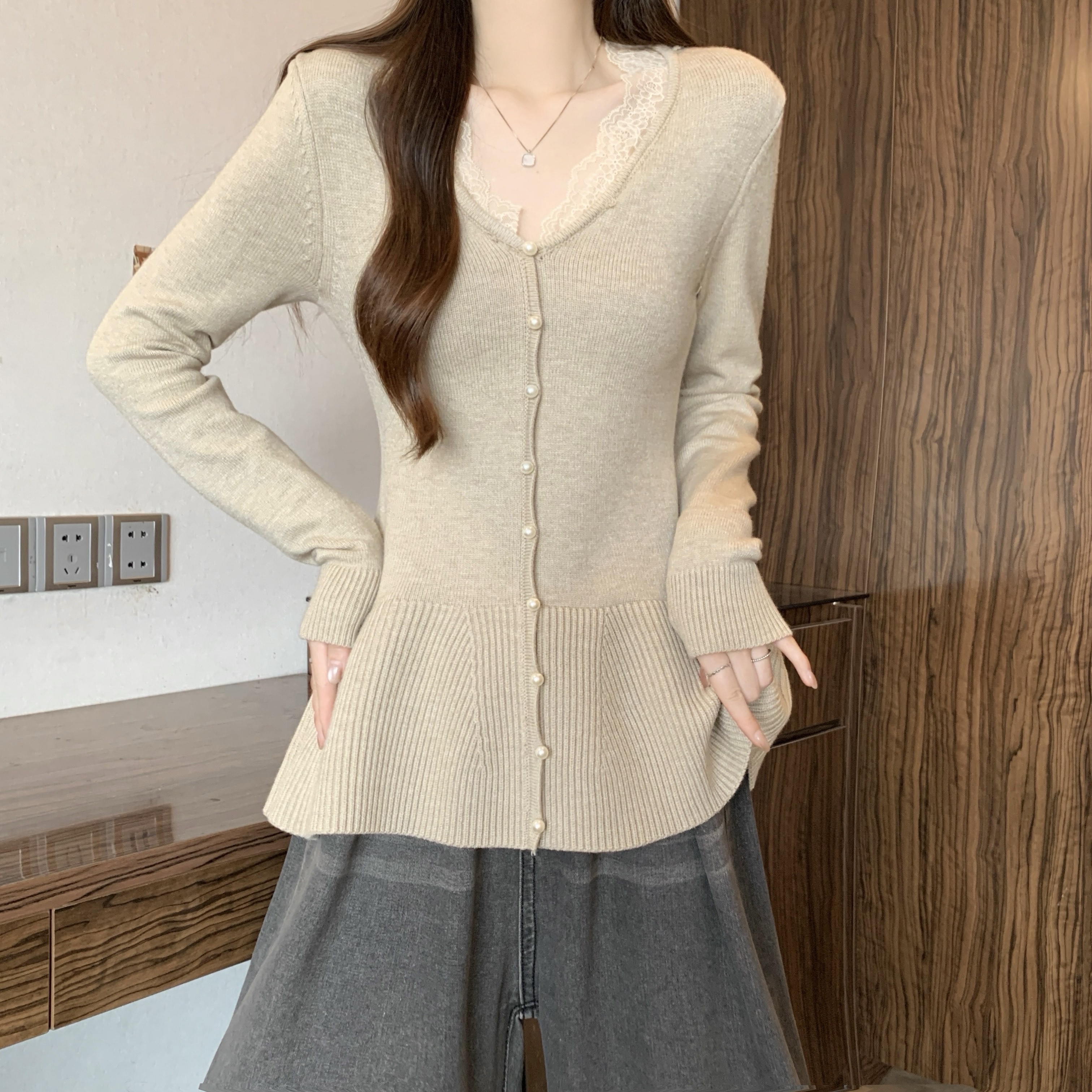 Home > 毛衣、针织衫 > FA51169# 大码蕾丝边V领正肩针织衫女秋冬胖MM百搭遮胯显瘦打底衫上衣 服裝批發女裝批發服飾貨源