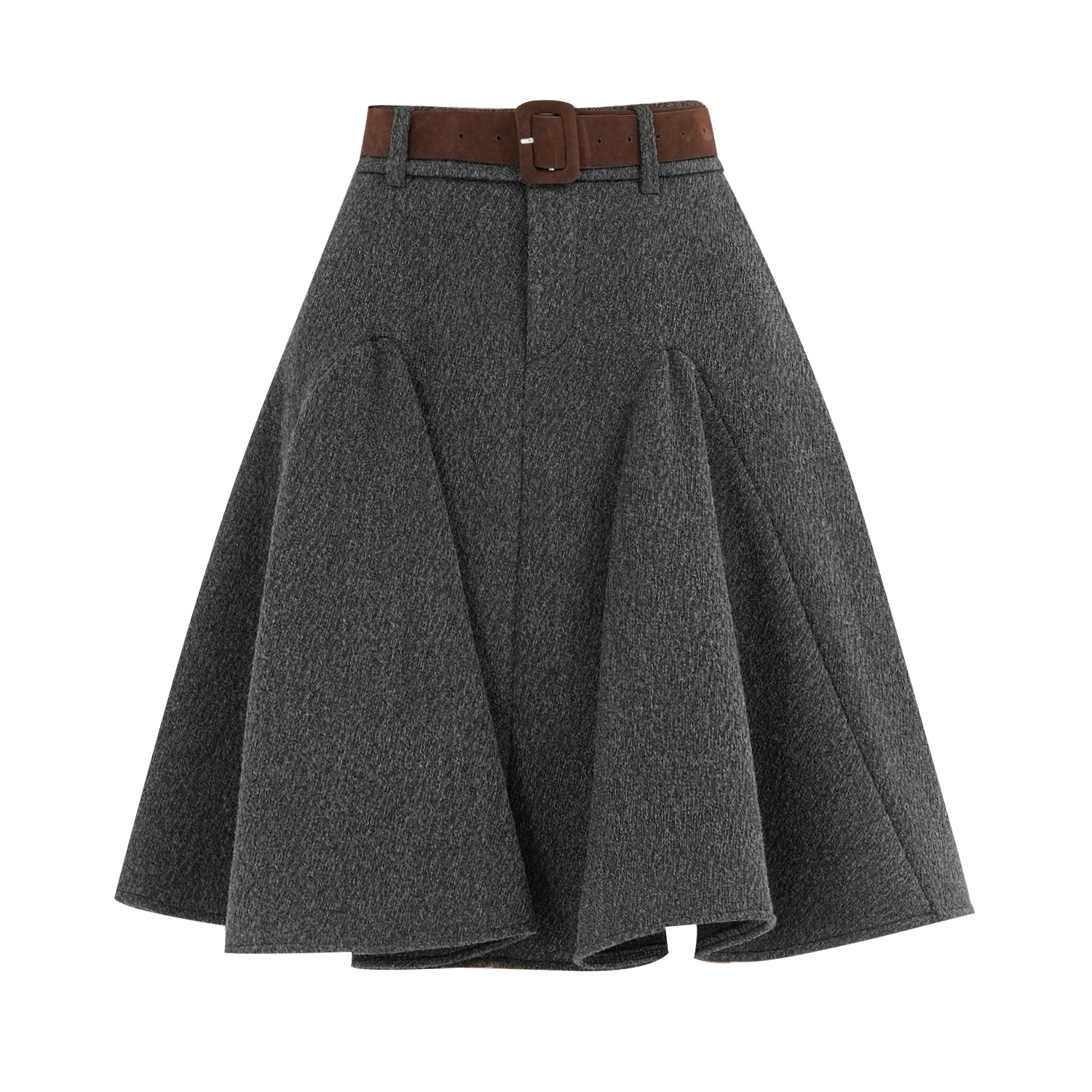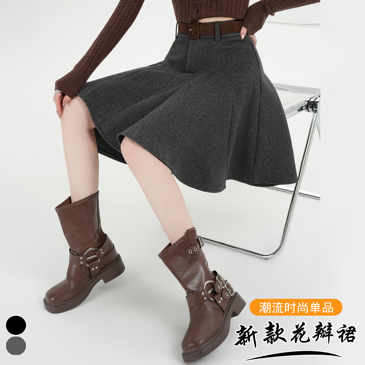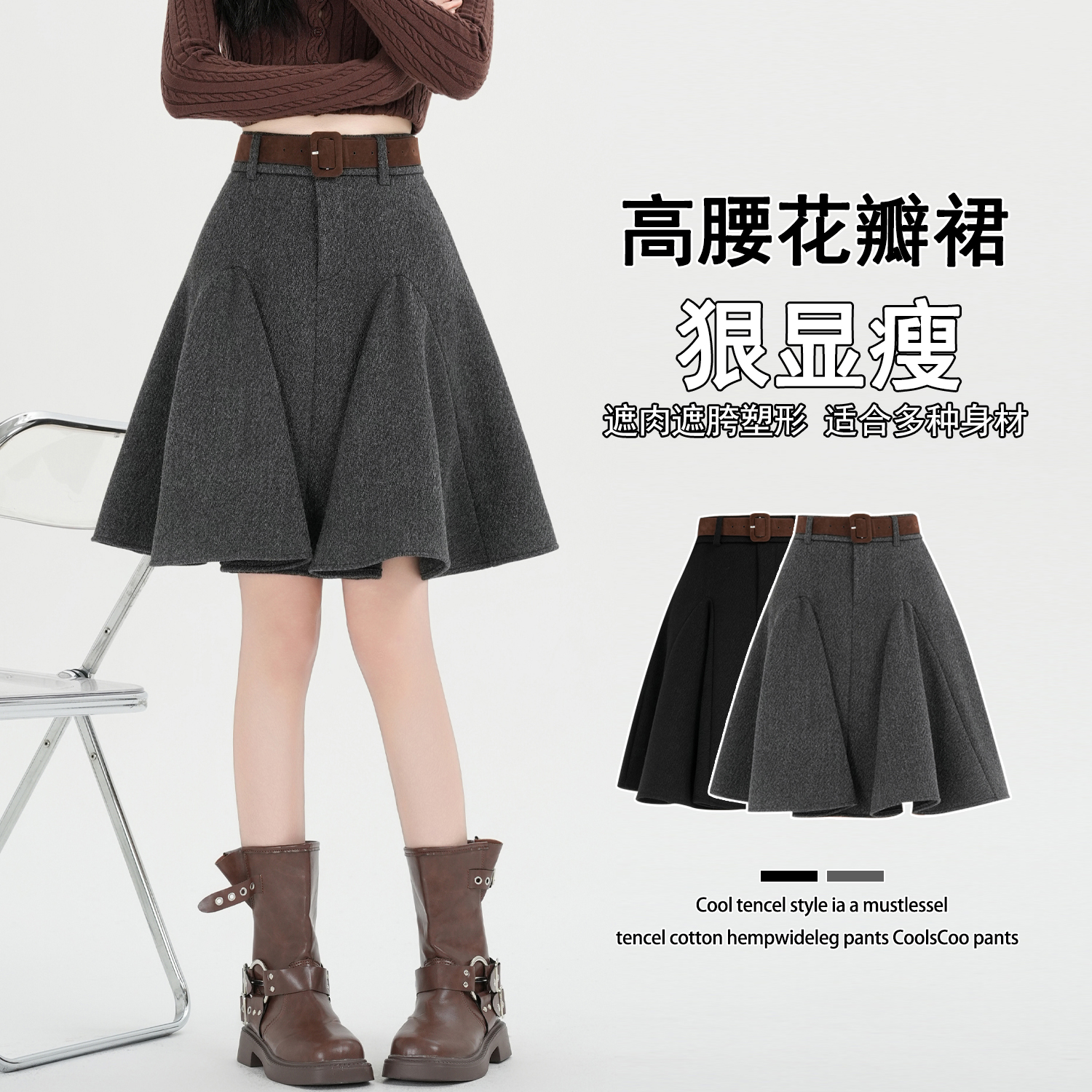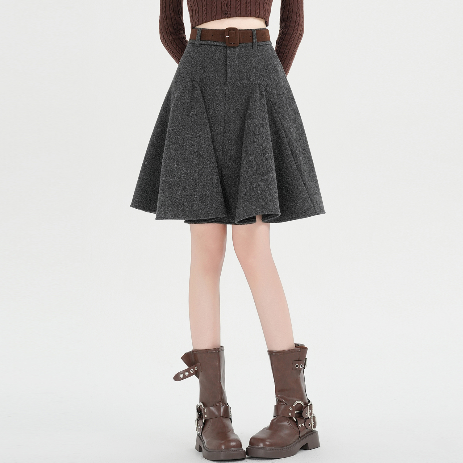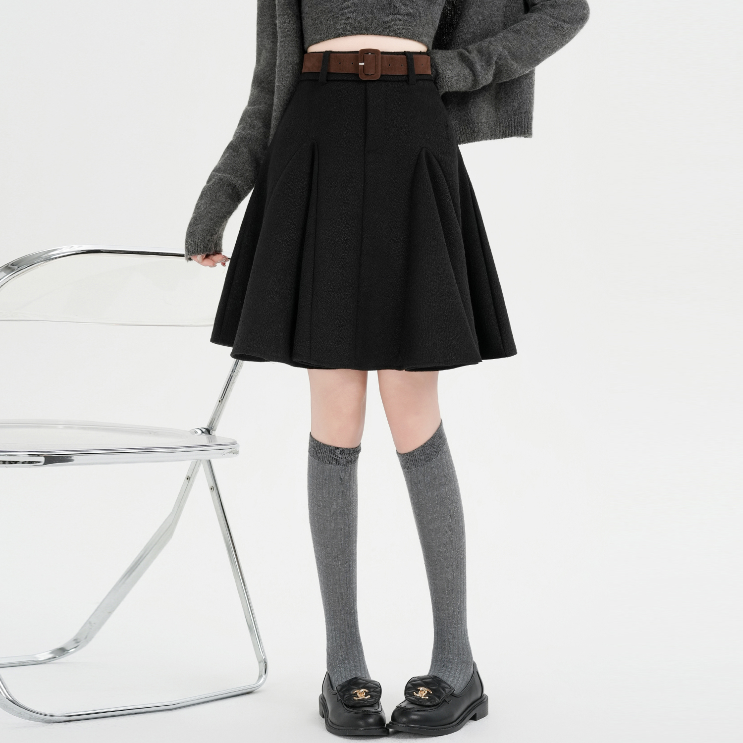 FA51379# 秋冬灰色设计感毛呢百褶半身裙女高腰显瘦A字伞裙遮肉短裙子 服裝批發女裝批發服飾貨源
