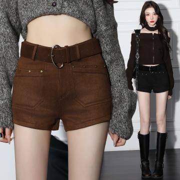 FA51393# 鹿皮绒短裤女秋冬新款高腰外穿气质辣妹修身a字打底靴裤 服裝批發女裝批發服飾貨源