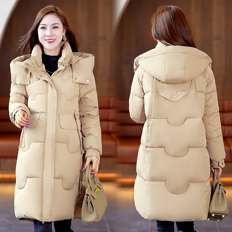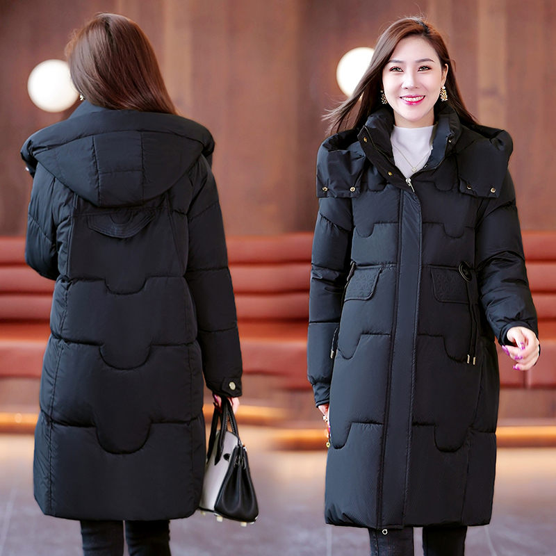 保暖时尚中长款冬季新款纯色棉服可脱卸连帽简约舒适百搭 服裝批發女裝批發服飾貨源