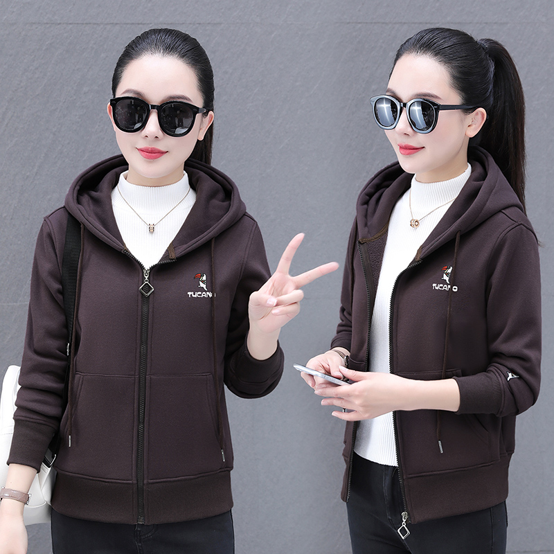 外套秋冬新款开衫连帽女时尚大码女装韩版外套 可二开 服裝批發女裝批發服飾貨源