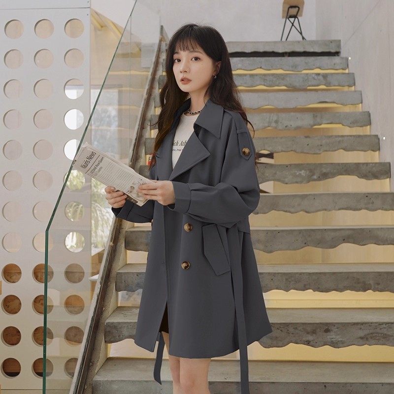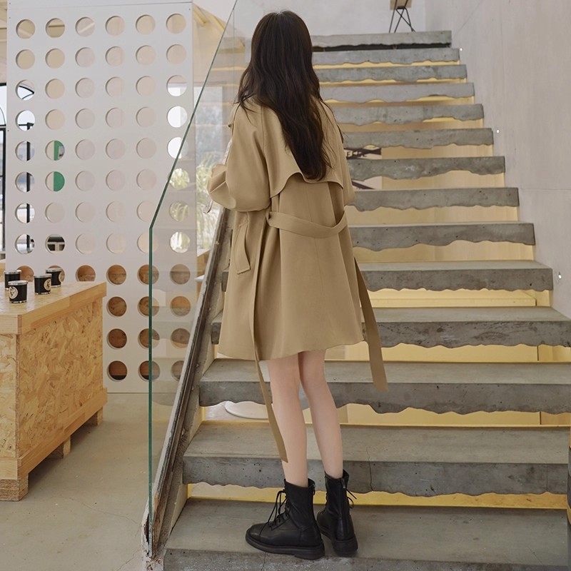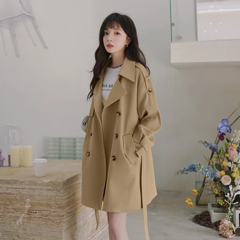 FA52575# 韩系温柔卡其色风衣外套女秋冬新款春季中长款英伦风宽松大衣 服裝批發女裝批發服飾貨源