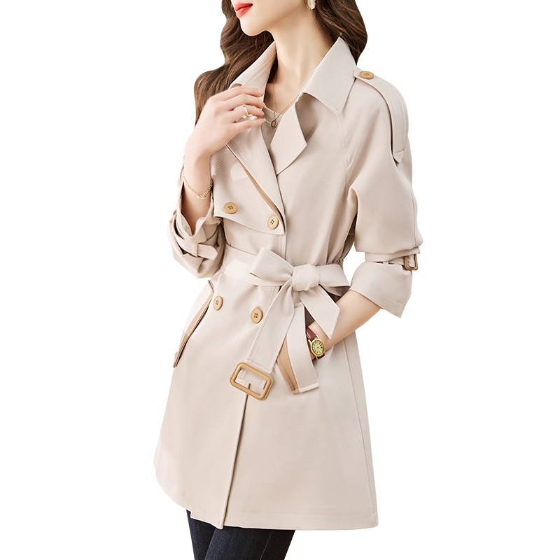 FA52582# 米白色风衣外套女中长款春秋季新款今年流行漂亮收腰气质大衣 服裝批發女裝批發服飾貨源
