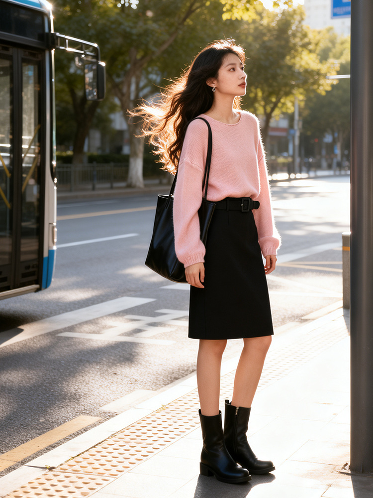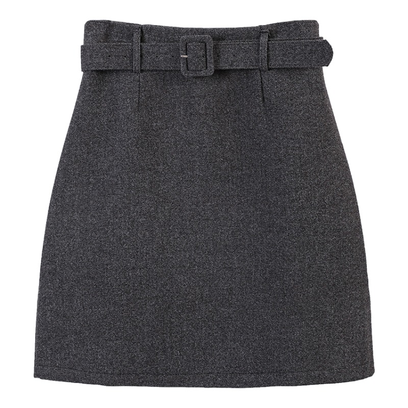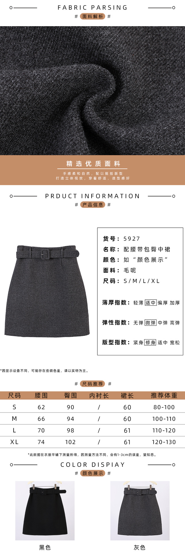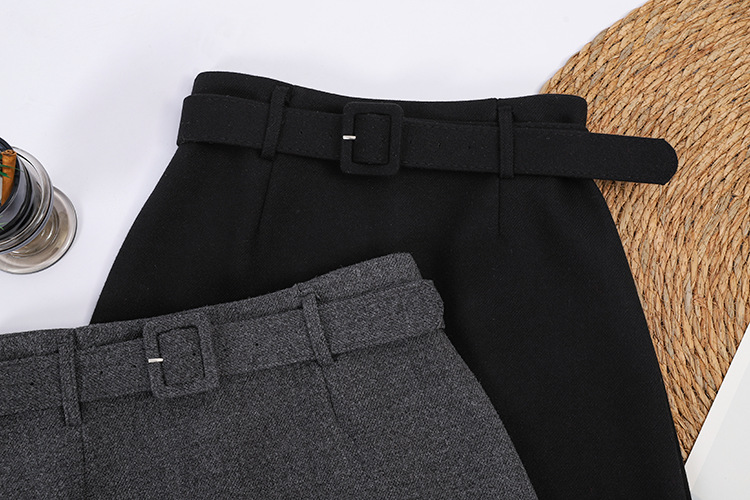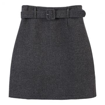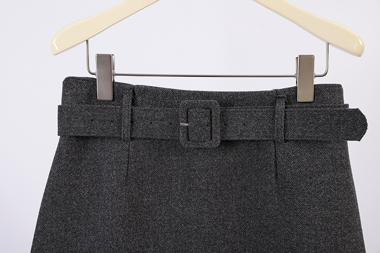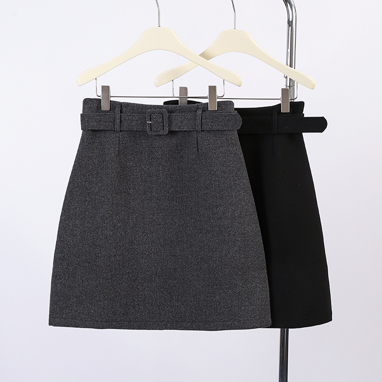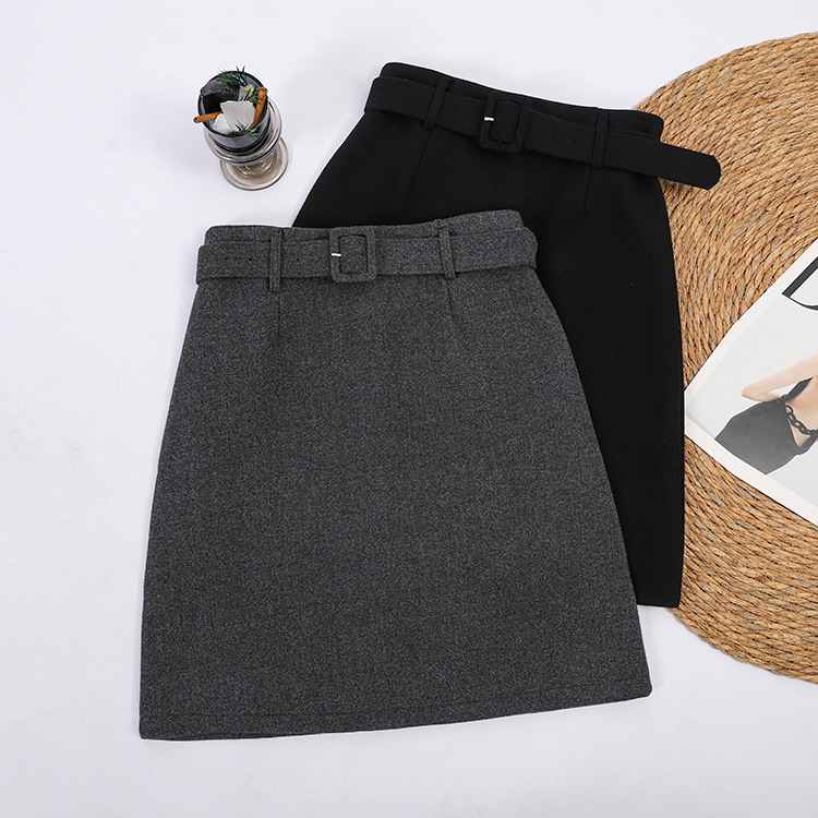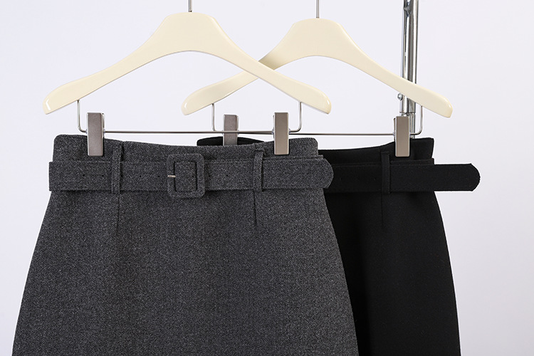 FA52666# 韩系配腰带高腰毛呢中裙简女秋冬新款约设计感纯色A字包臀裙 服裝批發女裝批發服飾貨源