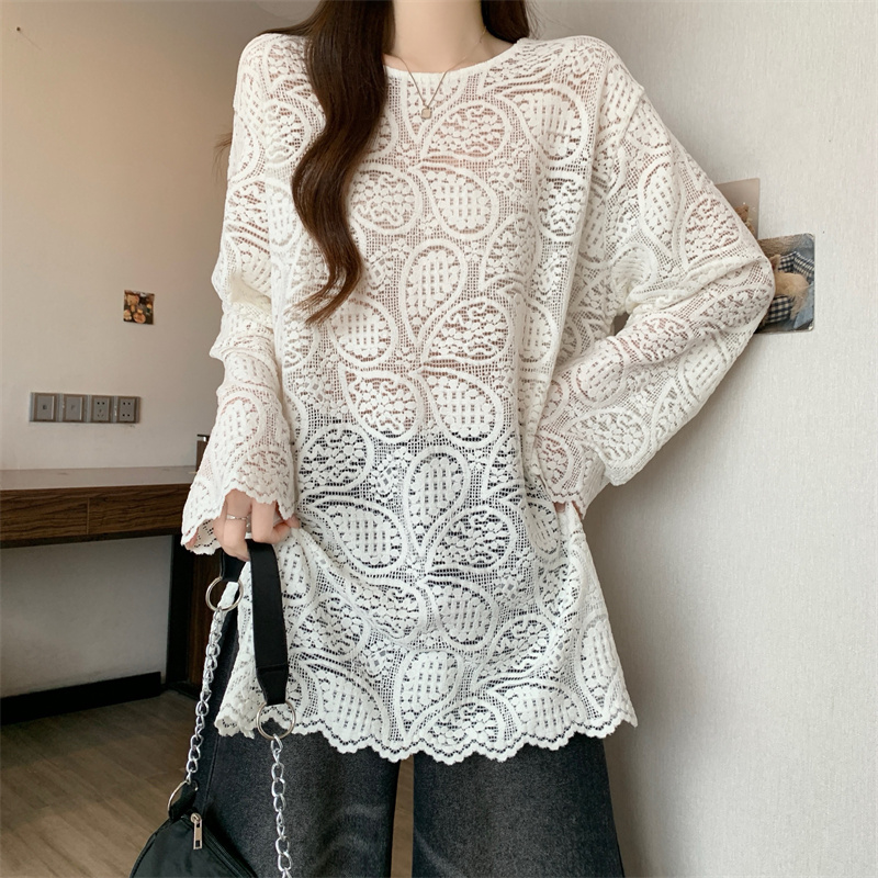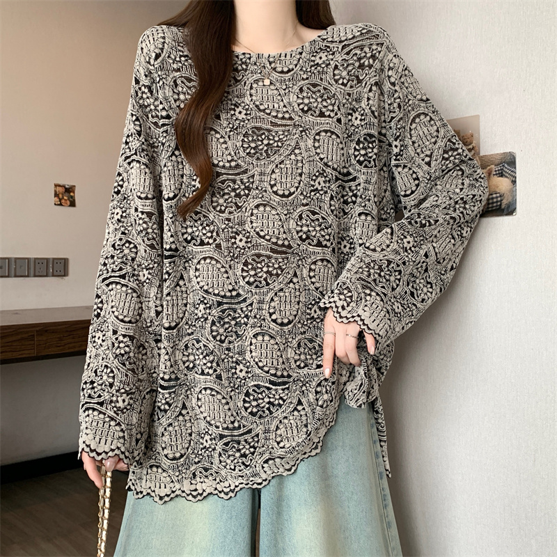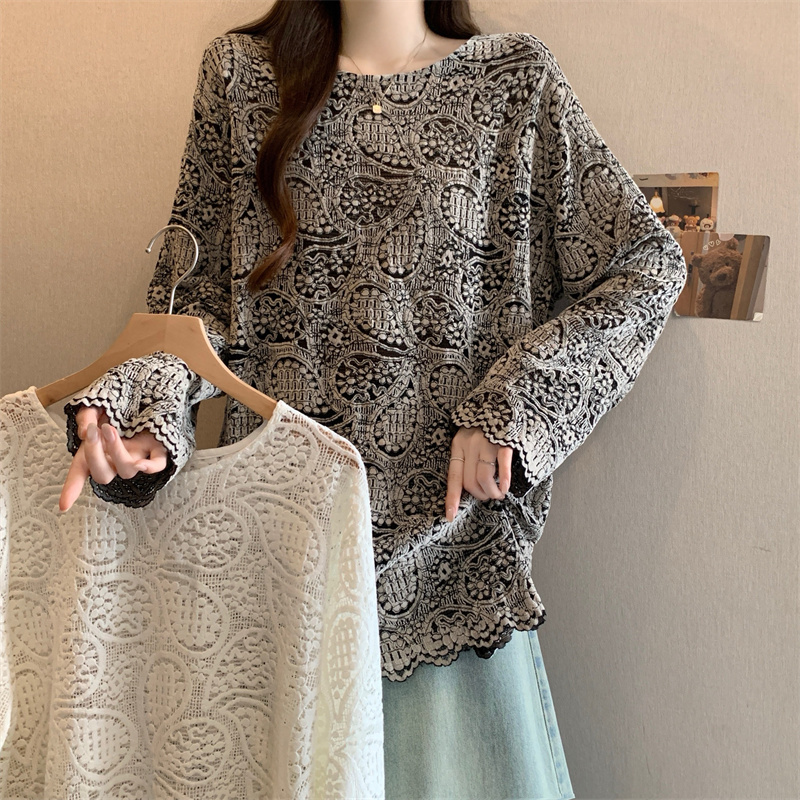 FA52962# 大码女装秋季新款洋气蕾丝衫宽松显瘦中长款打底小衫上衣 服裝批發女裝批發服飾貨源