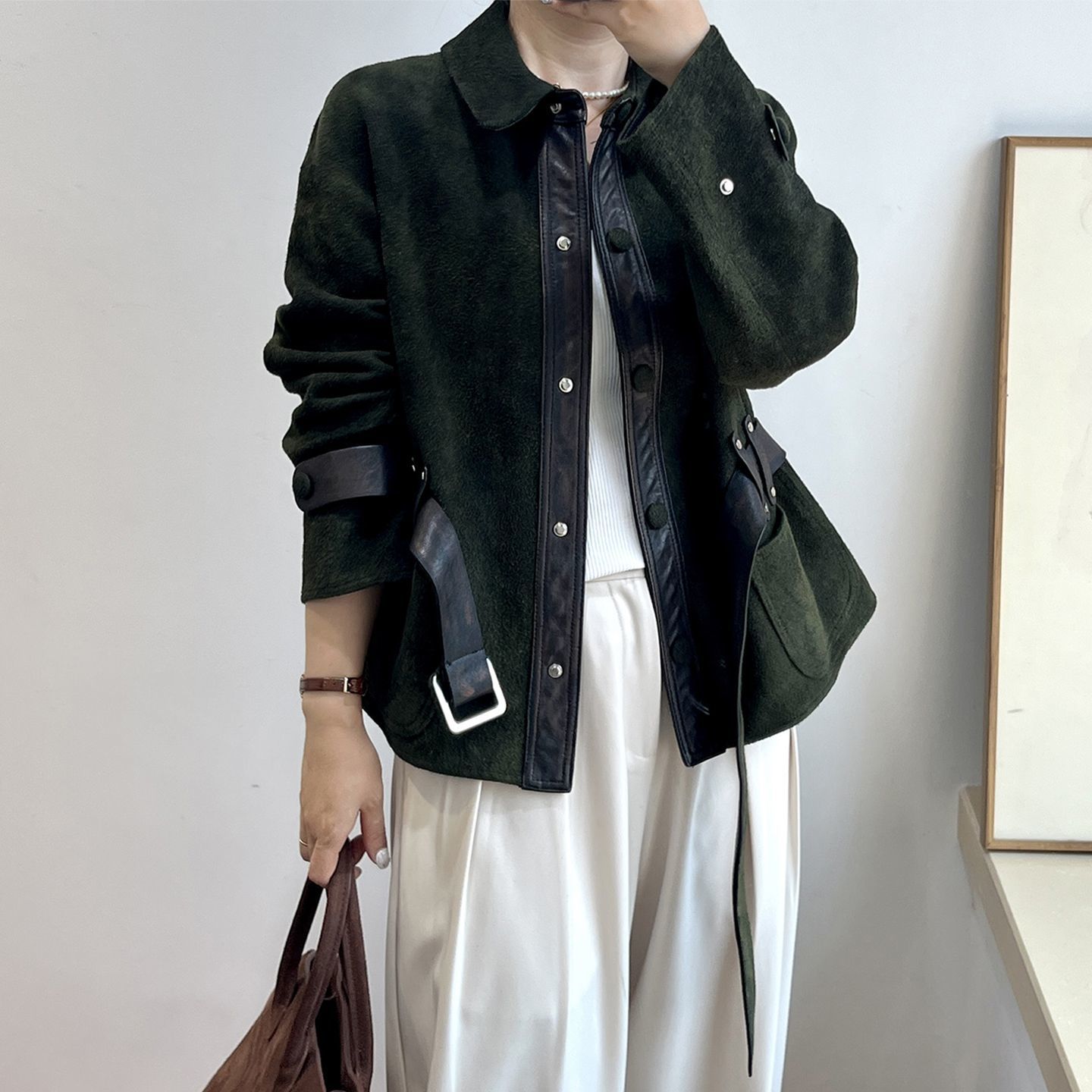 FA52985# 法式复古高级感皮衣夹克外套秋新款女洋气百搭常规绒面复古宽松 服裝批發女裝批發服飾貨源