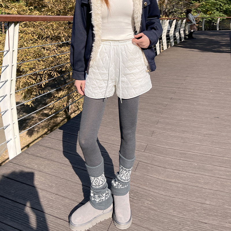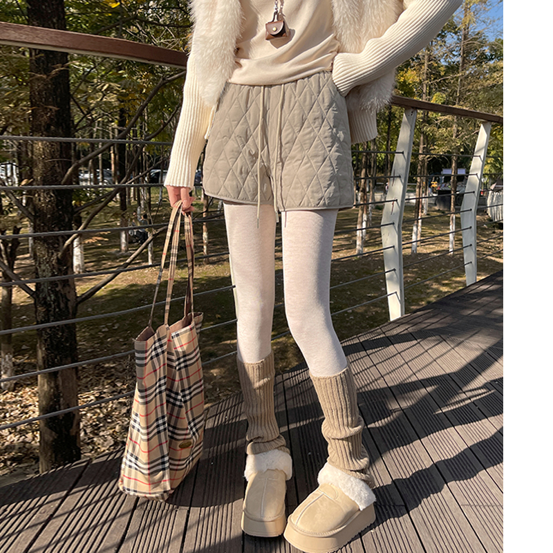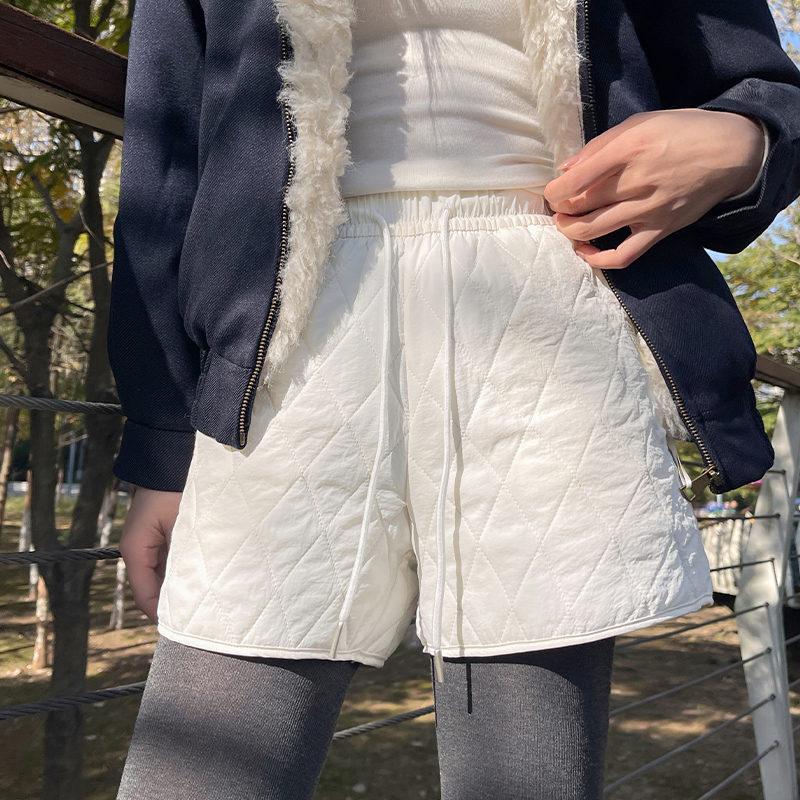 FA52996# 菱形格纹短裤女秋冬季新款宽松显瘦小个子夹棉保暖热裤 服裝批發女裝批發服飾貨源