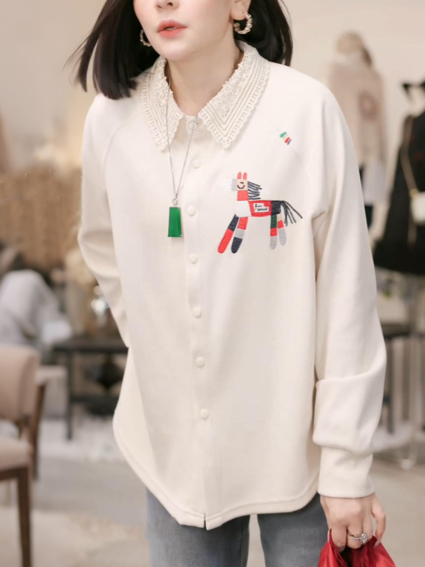 米白色上衣