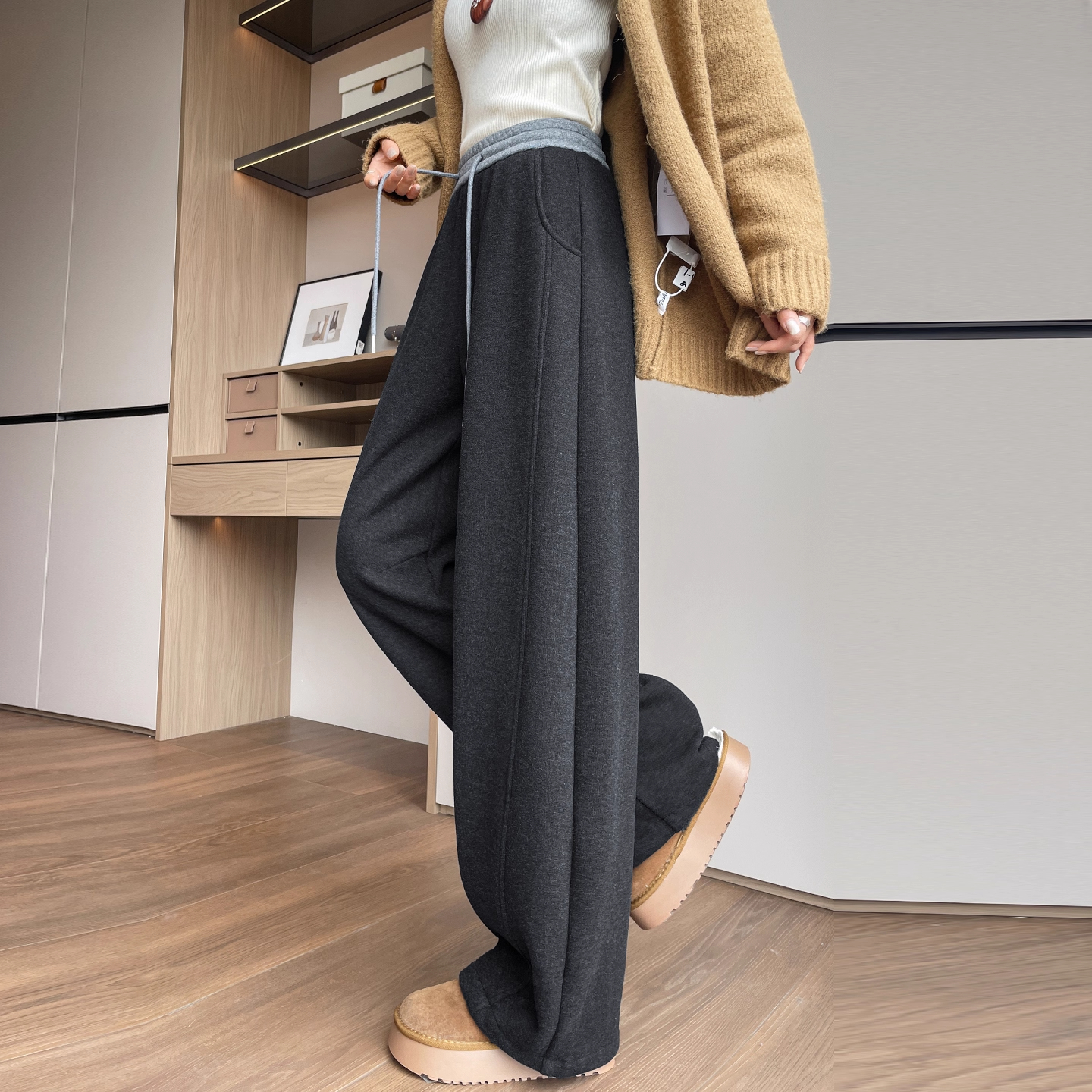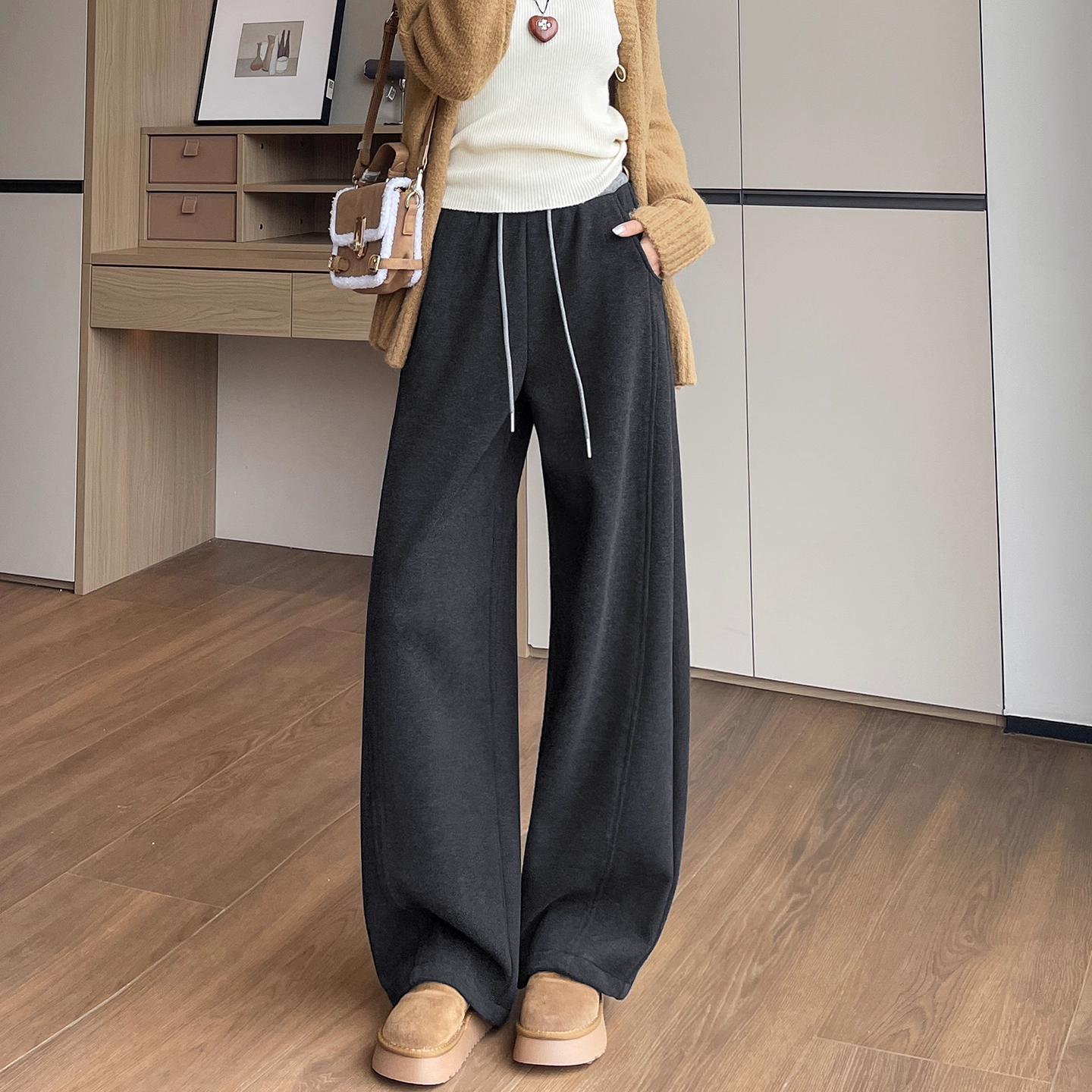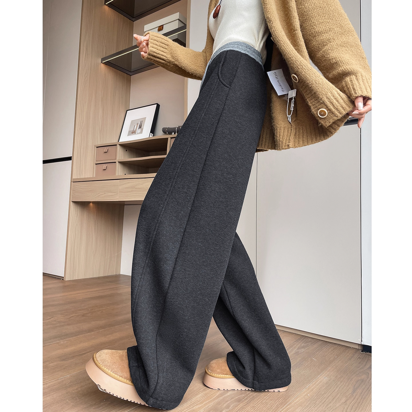FA53066# 深灰色糯米裤女秋冬新款休闲宽松bf慵懒风运动加绒阔腿弯刀裤 服裝批發女裝批發服飾貨源