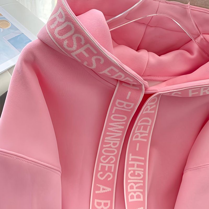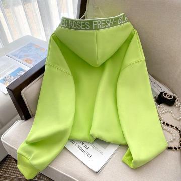 FA53102# 大码300斤时尚字母织带连帽卫衣女秋季薄款宽松减龄粉色长袖上衣 服裝批發女裝批發服飾貨源