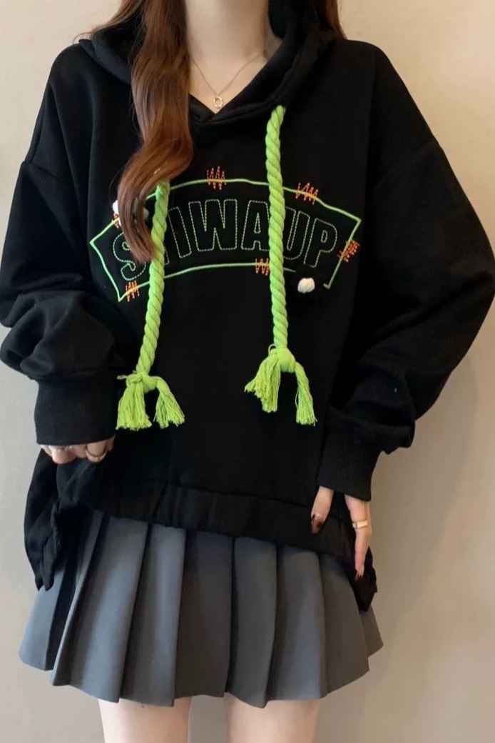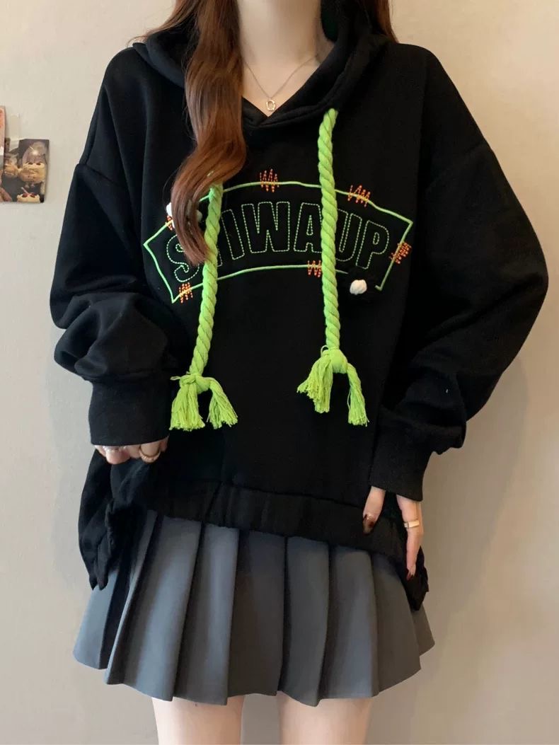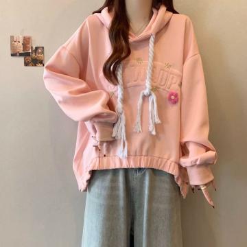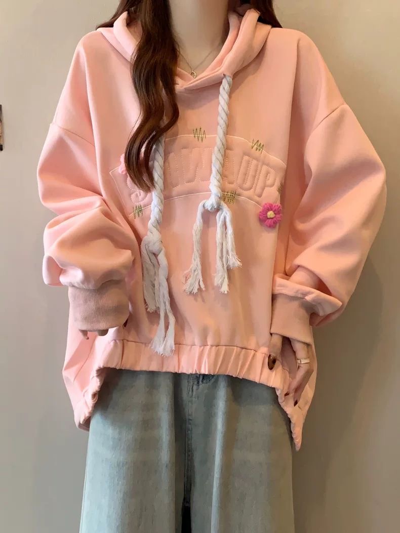 FA53103# 大码2-300斤设计感绣花连帽长袖卫衣女春秋胖mm宽松百搭上衣外套 服裝批發女裝批發服飾貨源