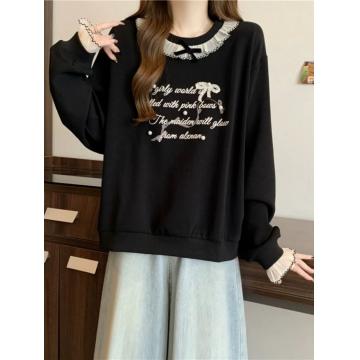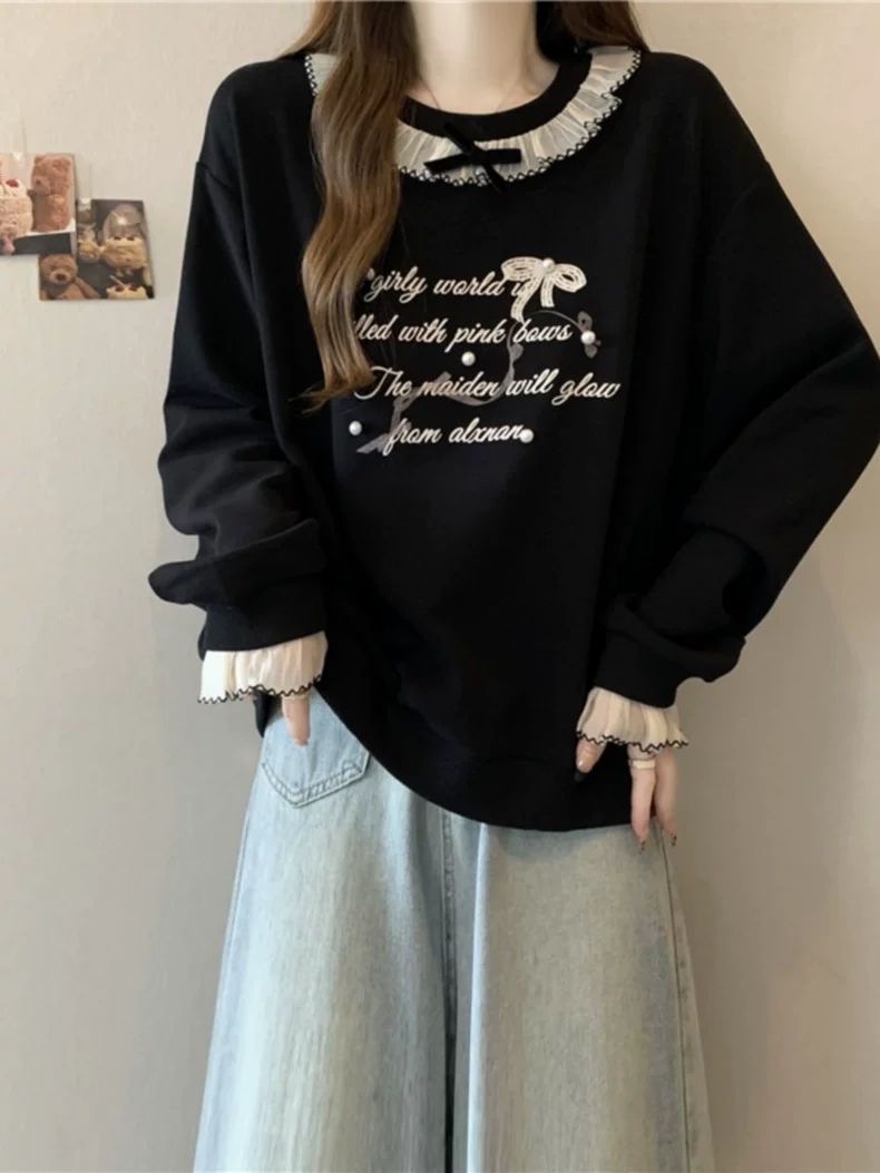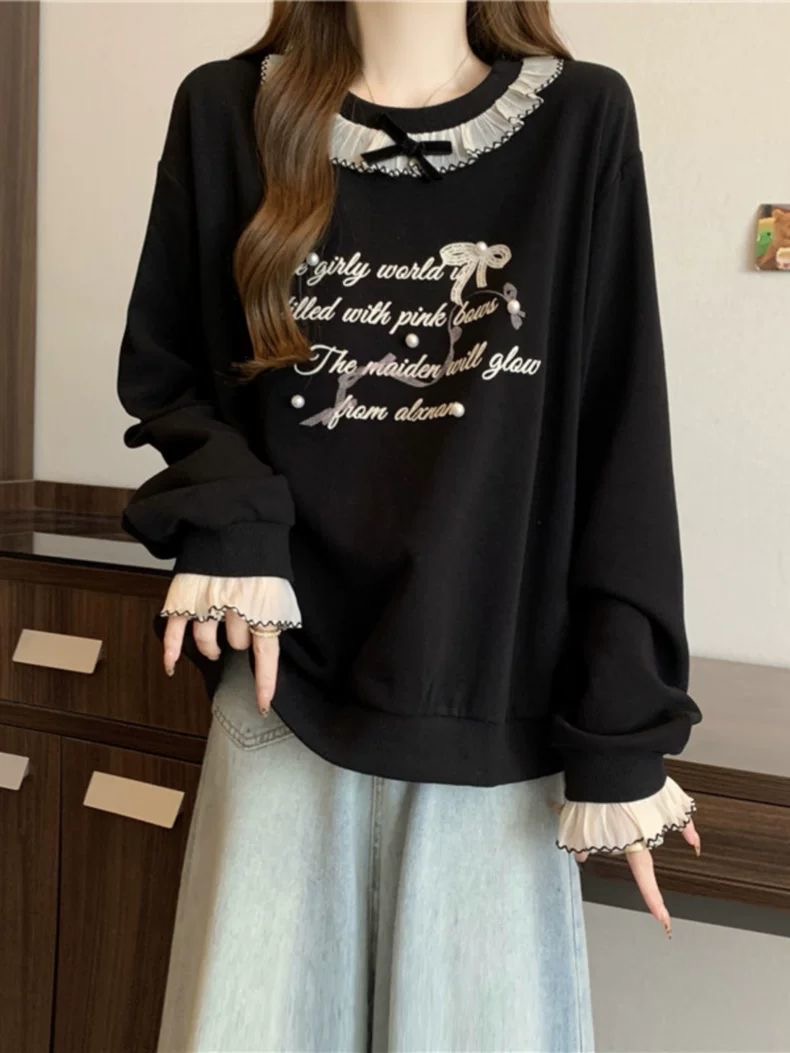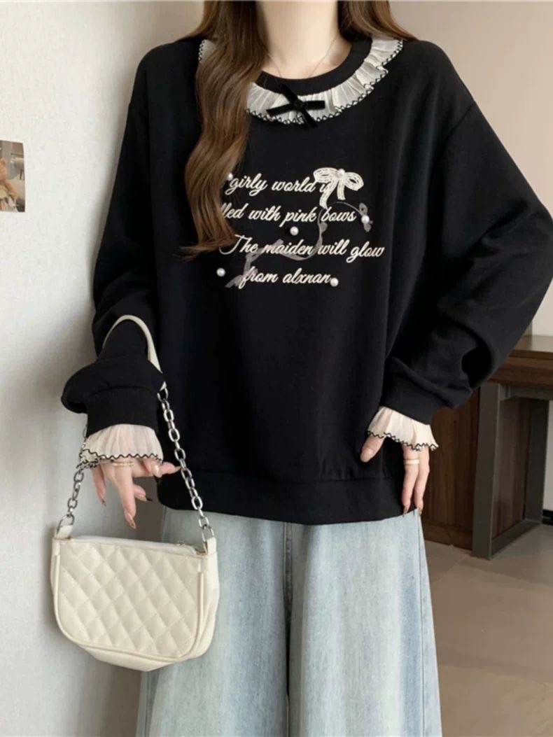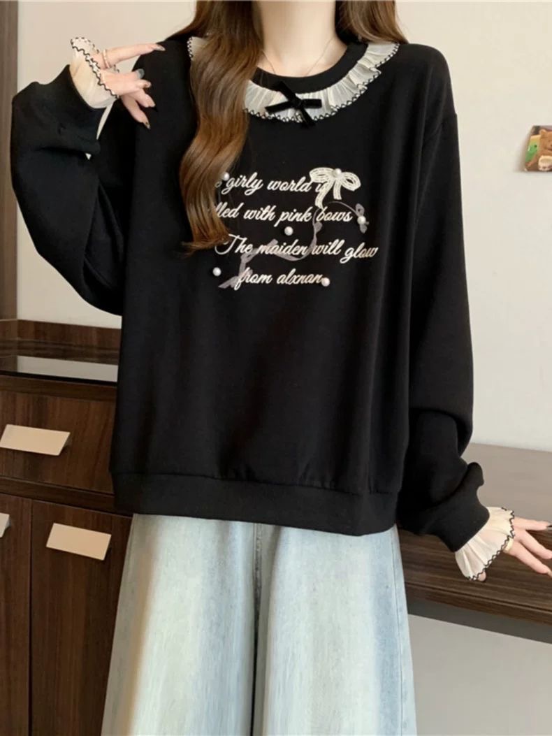 FA53105# 大码2-300斤荷叶领正肩卫衣女春秋新款胖mm宽松打底衫喇叭袖上衣 服裝批發女裝批發服飾貨源