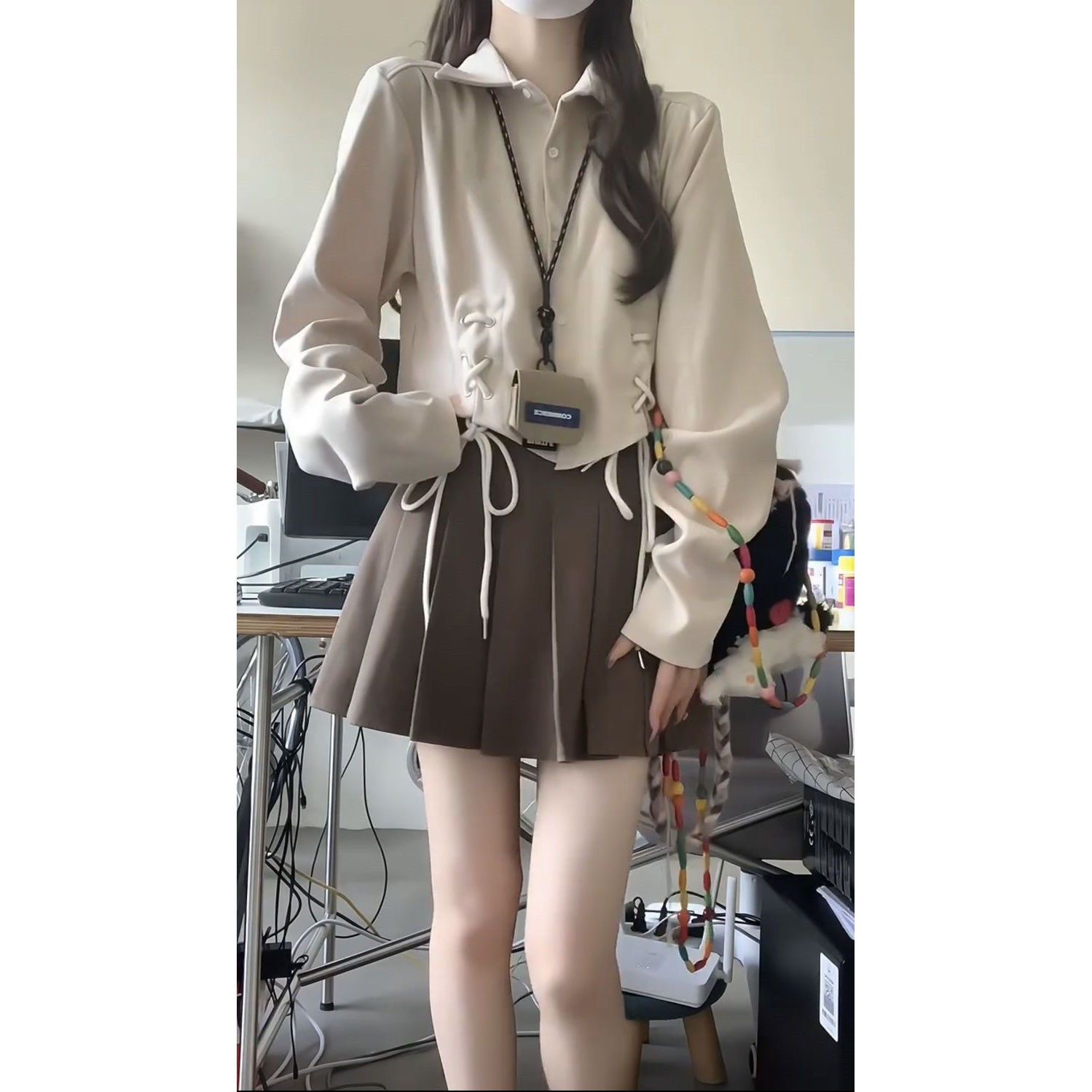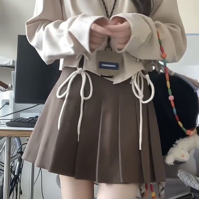 FA53124# 日系甜辣学院风短款系带长袖衬衫女黑色百褶裙秋季小个子穿搭套装 服裝批發女裝批發服飾貨源