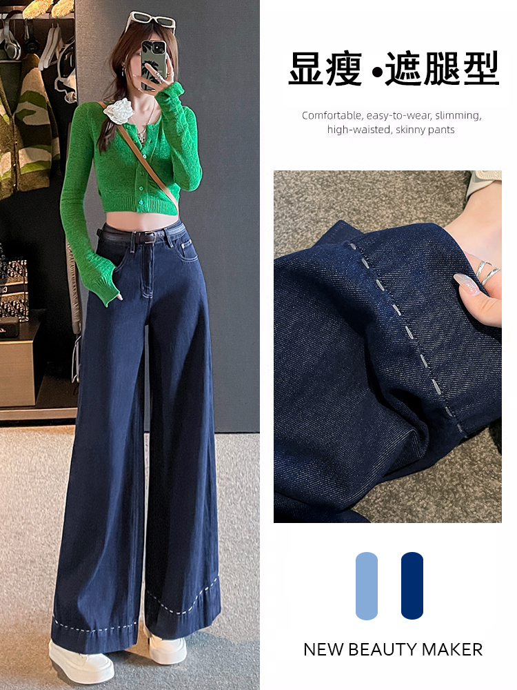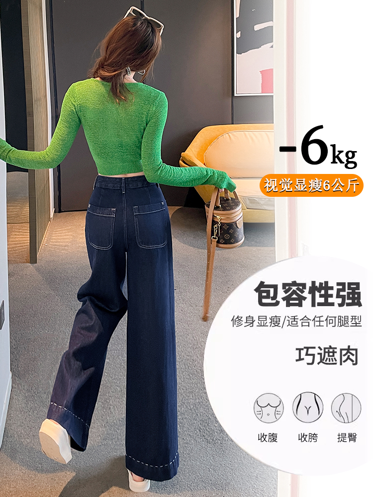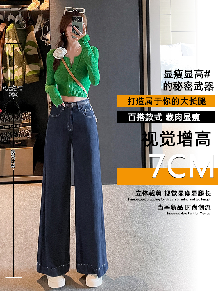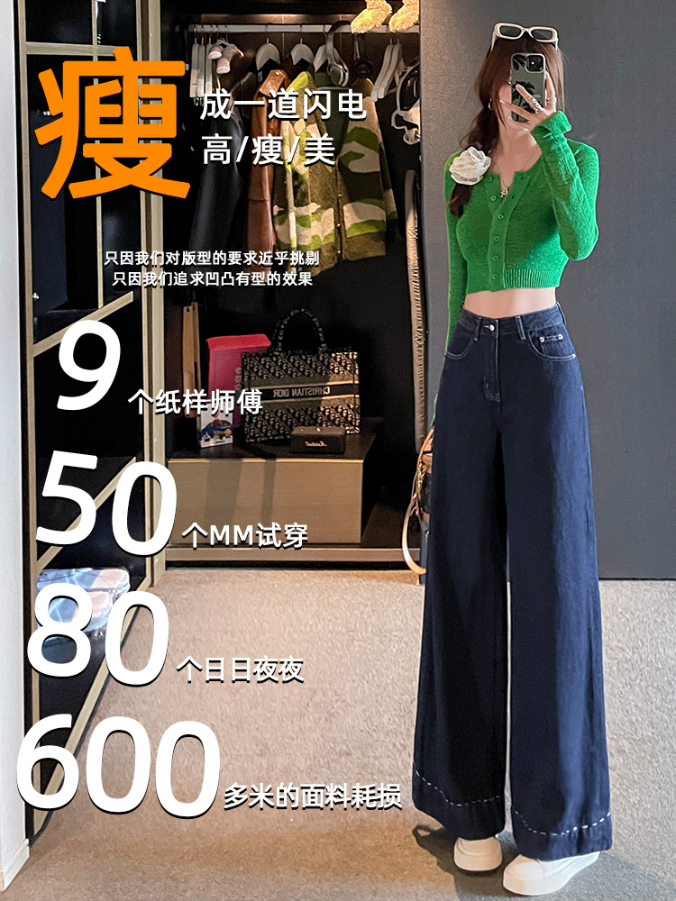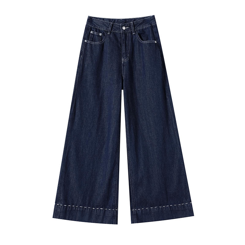 FA53203# 深蓝色阔腿牛仔裤女春季新款高腰显瘦宽松设计感直筒裤 服裝批發女裝批發服飾貨源