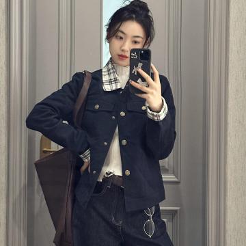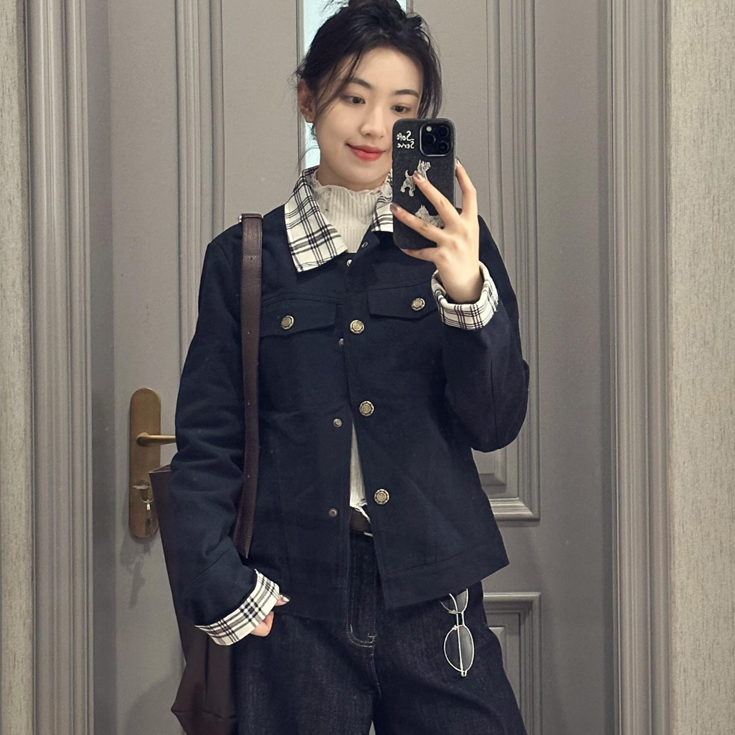 FA53213# 独特漂亮的初秋外套女新款小个子休闲翻领格纹拼接夹克潮 服裝批發女裝批發服飾貨源