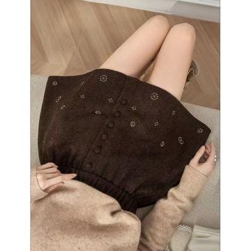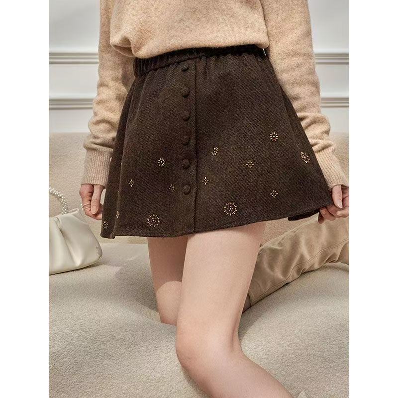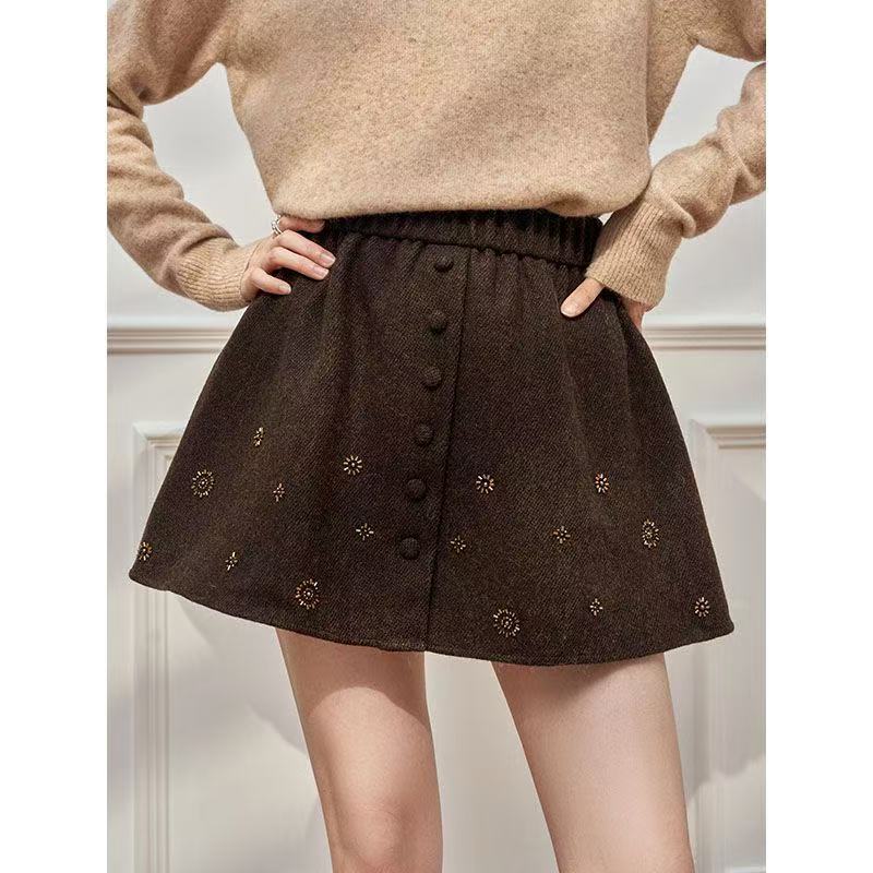 FA53245# 巨好看咖色高腰a字半身裙女冬季新款设计感显瘦通勤百搭休闲短裙 服裝批發女裝批發服飾貨源