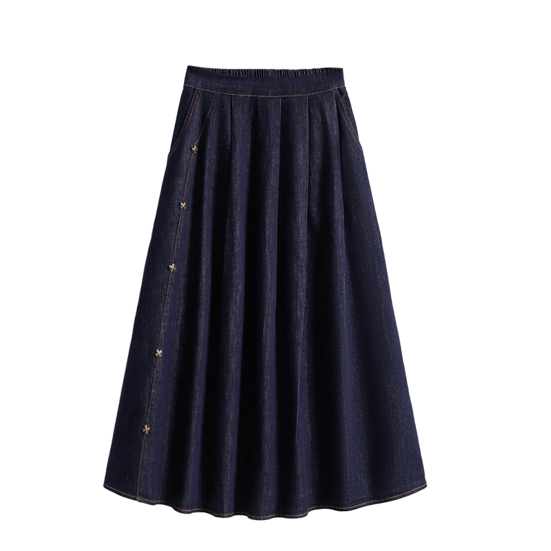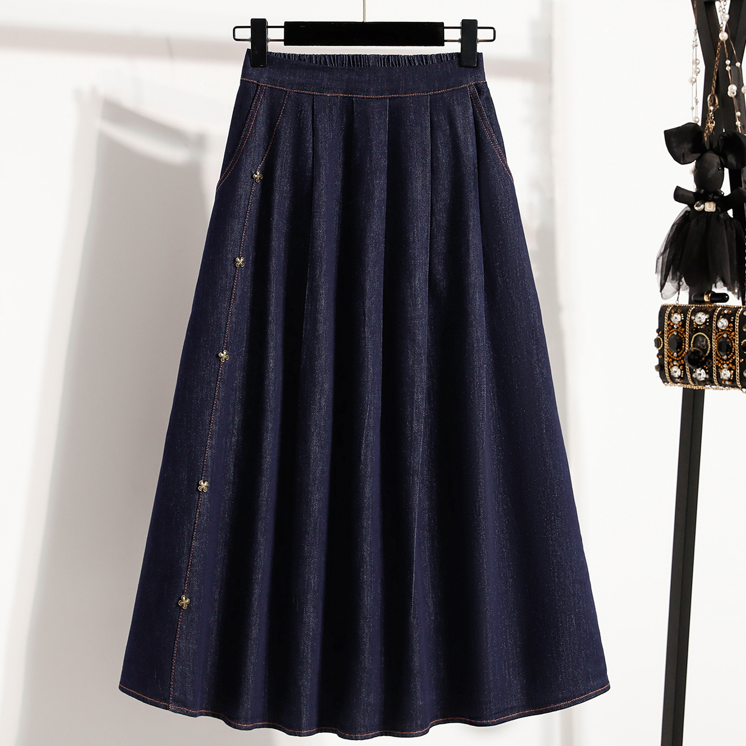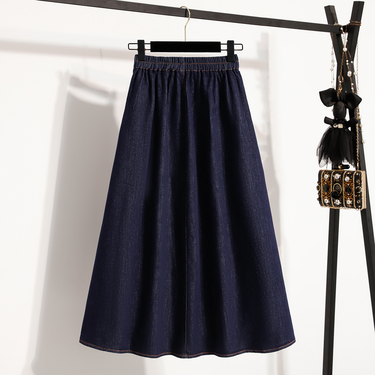 FA53863# 春新款大码松紧腰宽松牛仔半身裙胖MM显瘦时尚中长款裙 服裝批發女裝批發服飾貨源