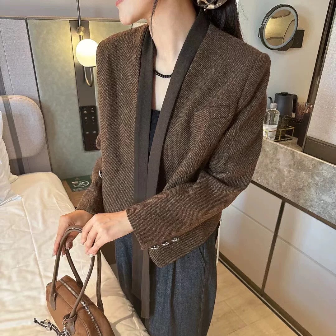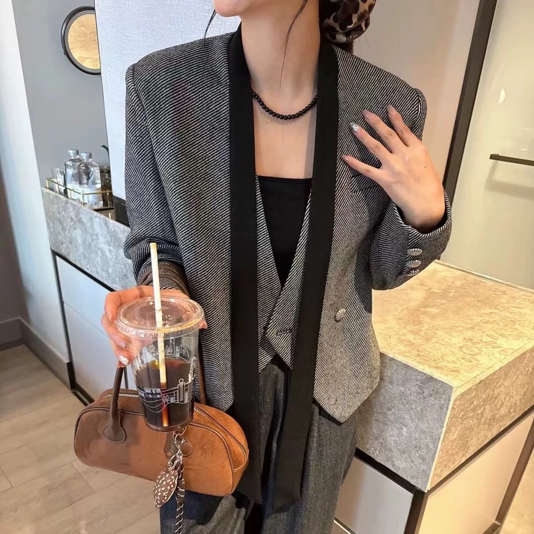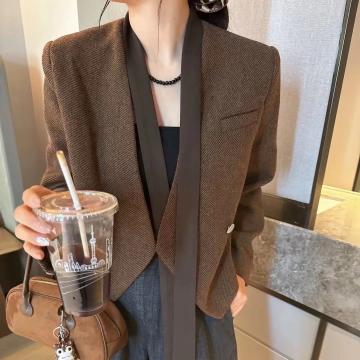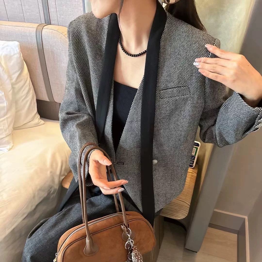 FA54051# 韩版高级感飘带西装短外套女春秋新款气质休闲显瘦小西服上衣 服裝批發女裝批發服飾貨源