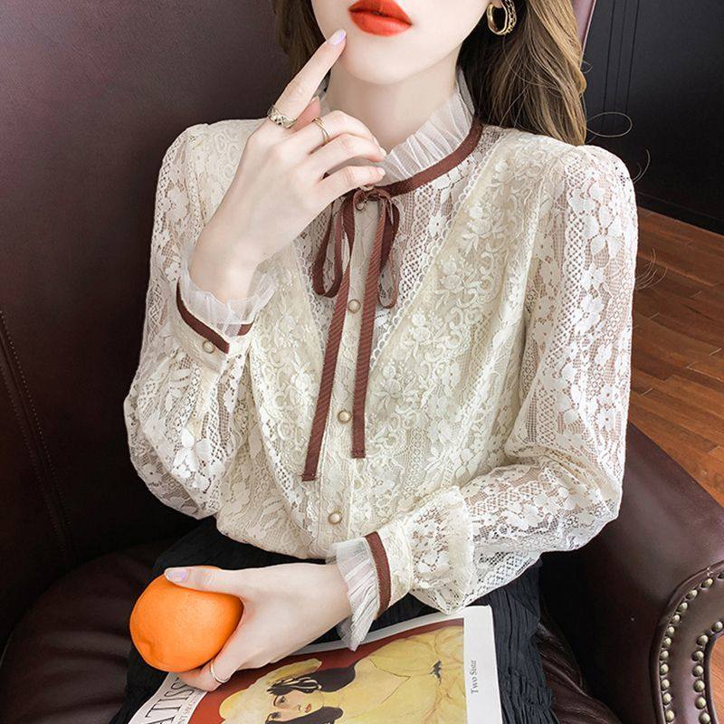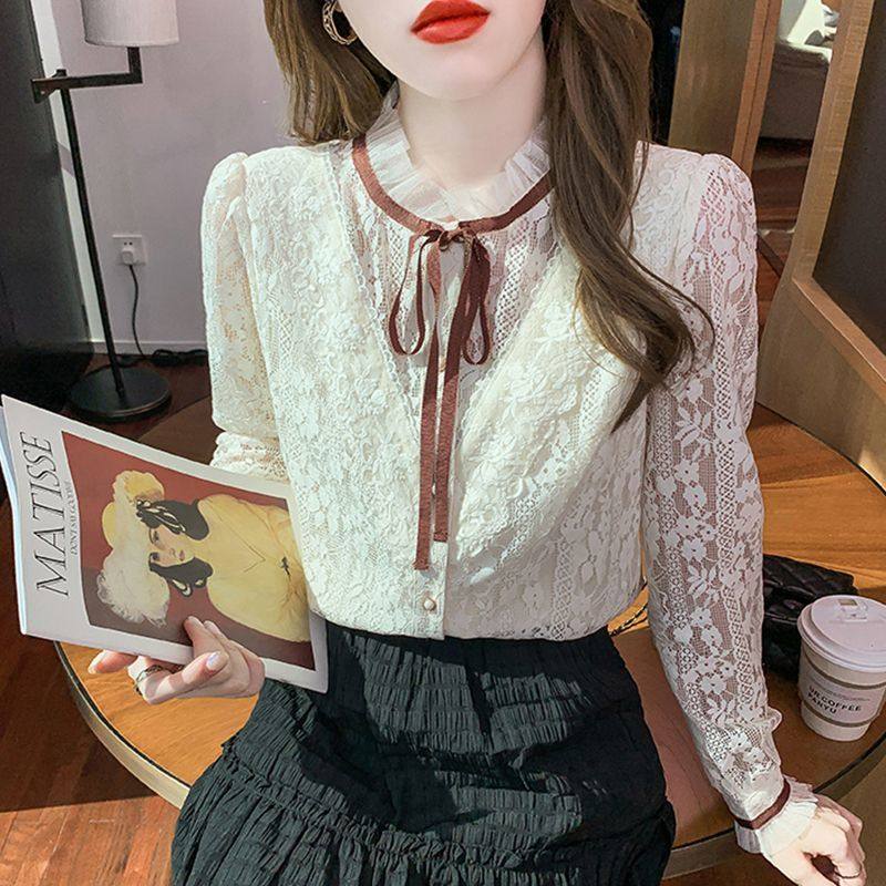 FA54277# 早春蕾丝打底衫女新款洋气上衣超仙气质百搭大码女装小衫 服裝批發女裝批發服飾貨源