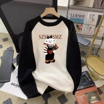 FA54409# 毛衣印花大码插肩袖秋冬新款宽松圆领针织男女同款 服裝批發女裝批發服飾貨源