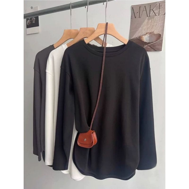 FA54411# 棉搭配鲨鱼裤显瘦长袖T恤女春秋大码宽松中长款打底衫上衣 服裝批發女裝批發服飾貨源