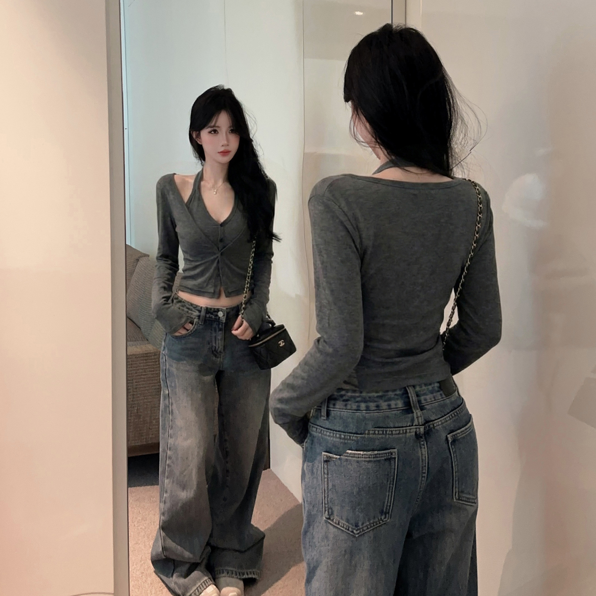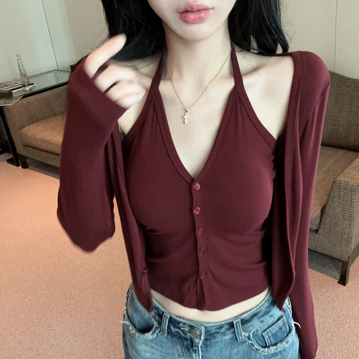 针织T恤棉 (假两件,里外两层扣子都可解开)