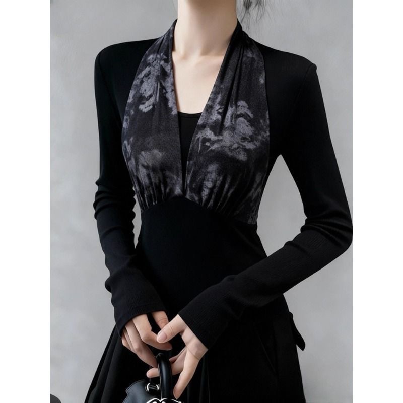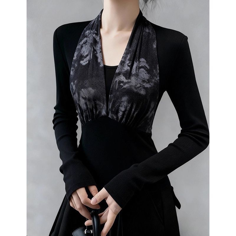 FA54803# 新款冬季高端精致气质名媛高级感轻奢法式小姿黑色假两件上衣 服裝批發女裝批發服飾貨源
