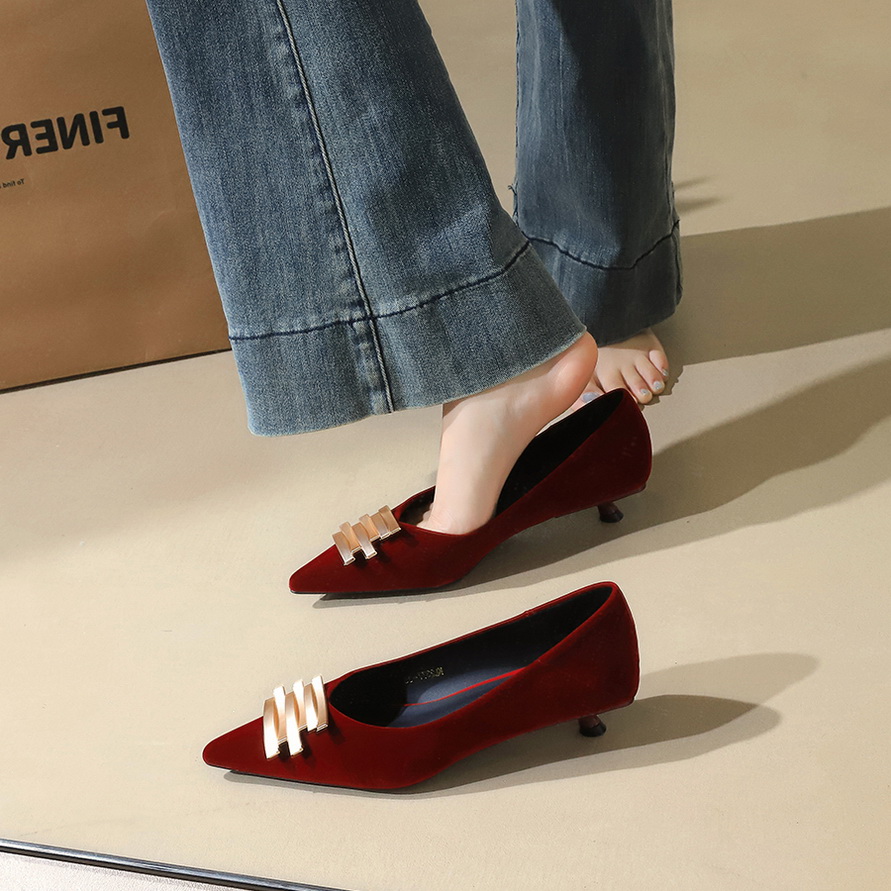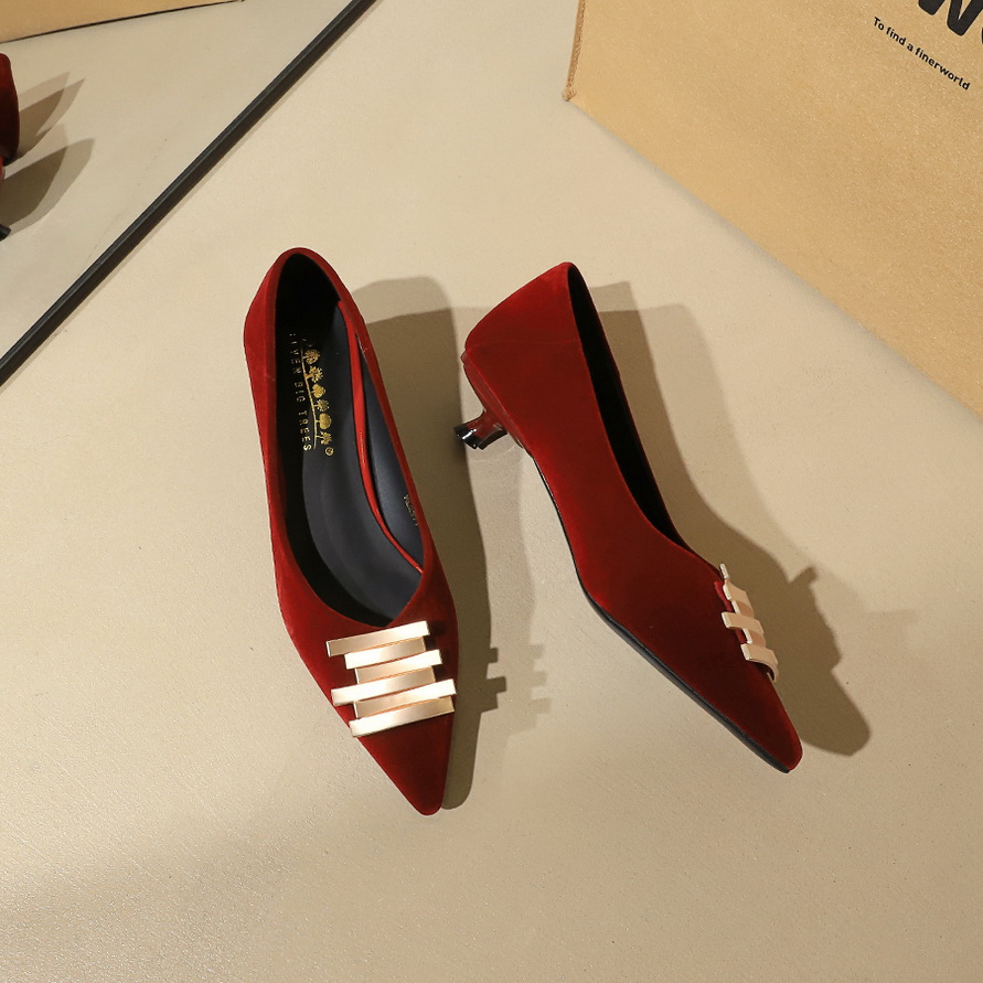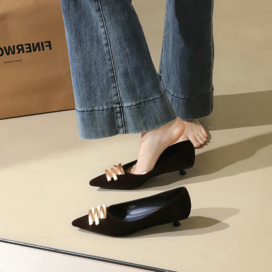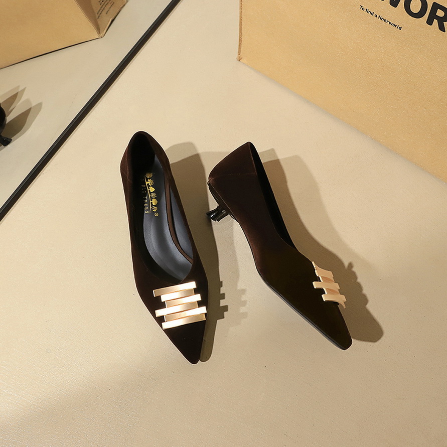 Home > 高跟鞋、坡跟鞋 > X-33054#韩版气质低跟绒面女鞋尖头浅口金属扣一脚蹬时尚单鞋女 鞋子批发女鞋批发高跟鞋批发
